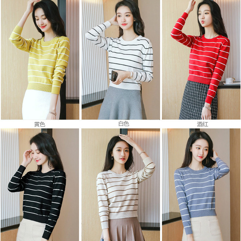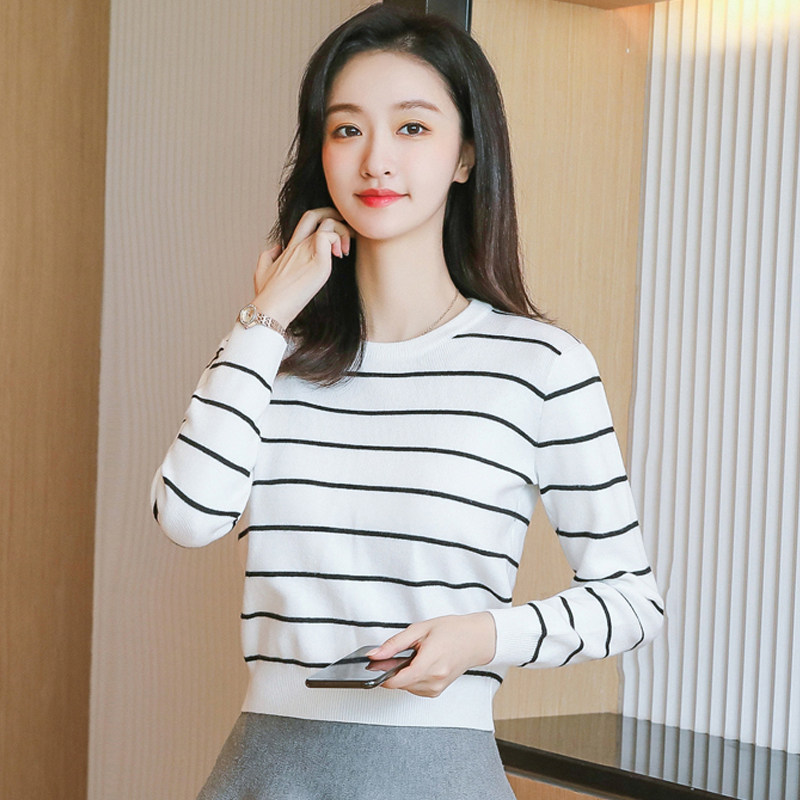 条纹毛衣女2026春季新款小个子气质短款上衣修身针织衫内搭打底衫