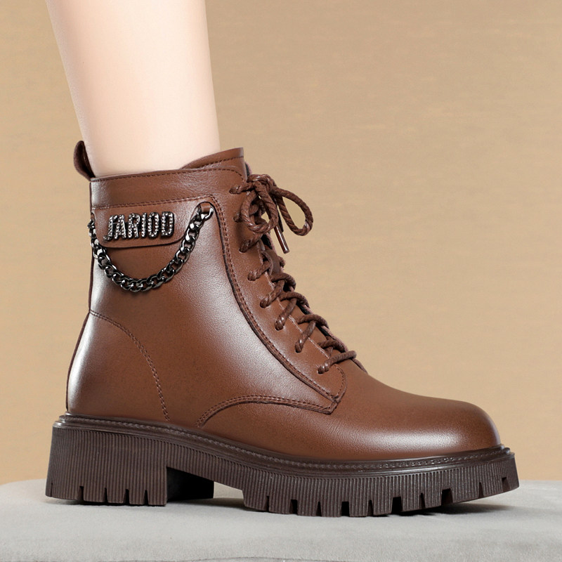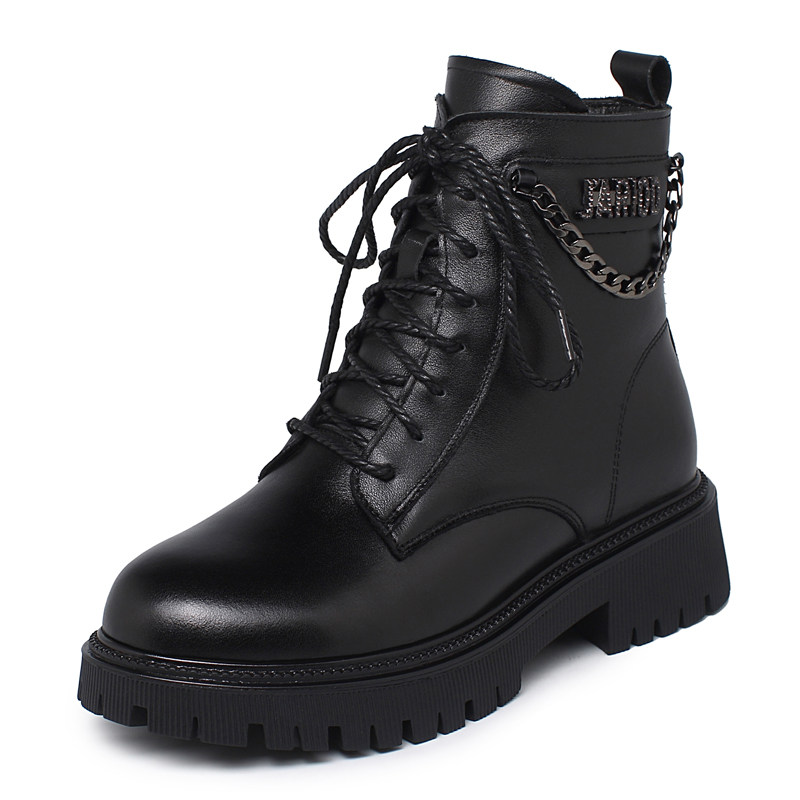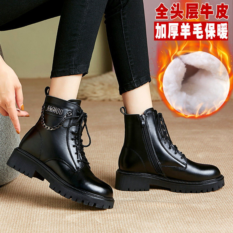 厚底马丁靴女款低帮短靴单靴真皮二棉鞋女冬加绒羊毛雪地靴子皮鞋