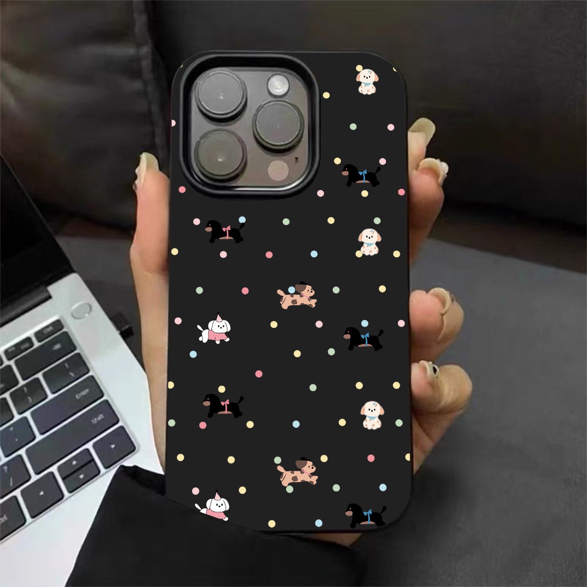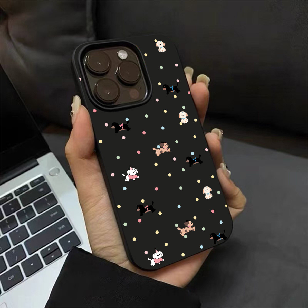 韩系ins波点小狗手机壳适用苹果17promax新款iphone15亮黑色14pro磨砂超薄13透明12女款11硅胶16全包防摔软壳