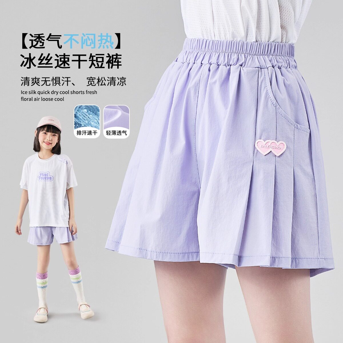 女童运动套装夏装2026新款女孩速干衣冰丝短裤儿童薄羽毛球训练服