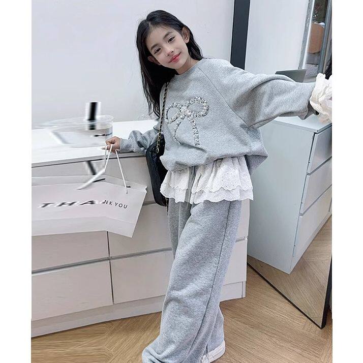 女童套装春秋新款洋气春装中大童韩版卫衣蕾丝初中生休闲两件套潮