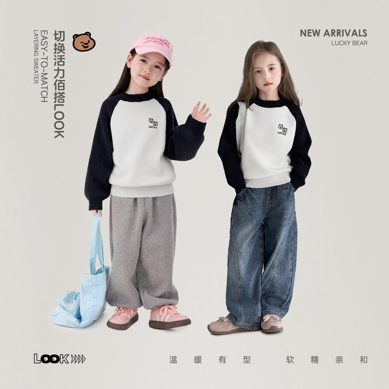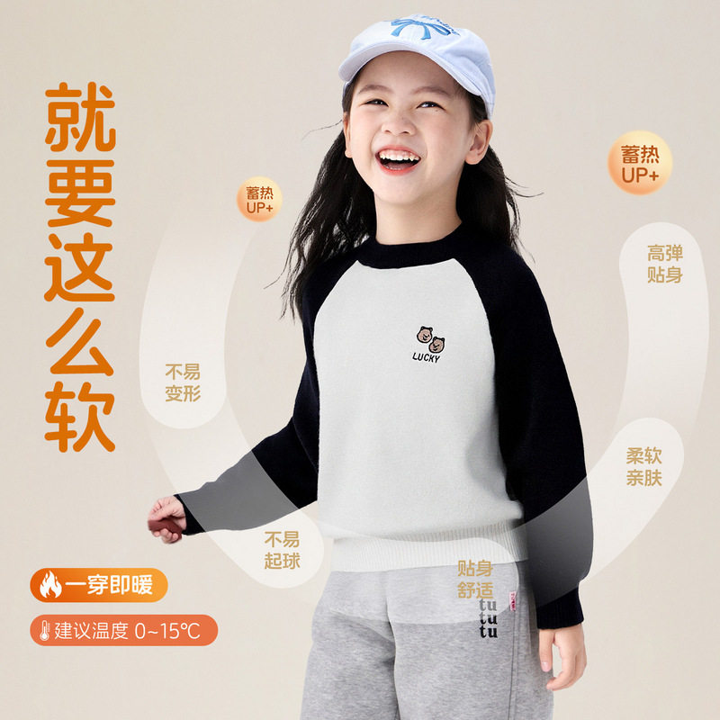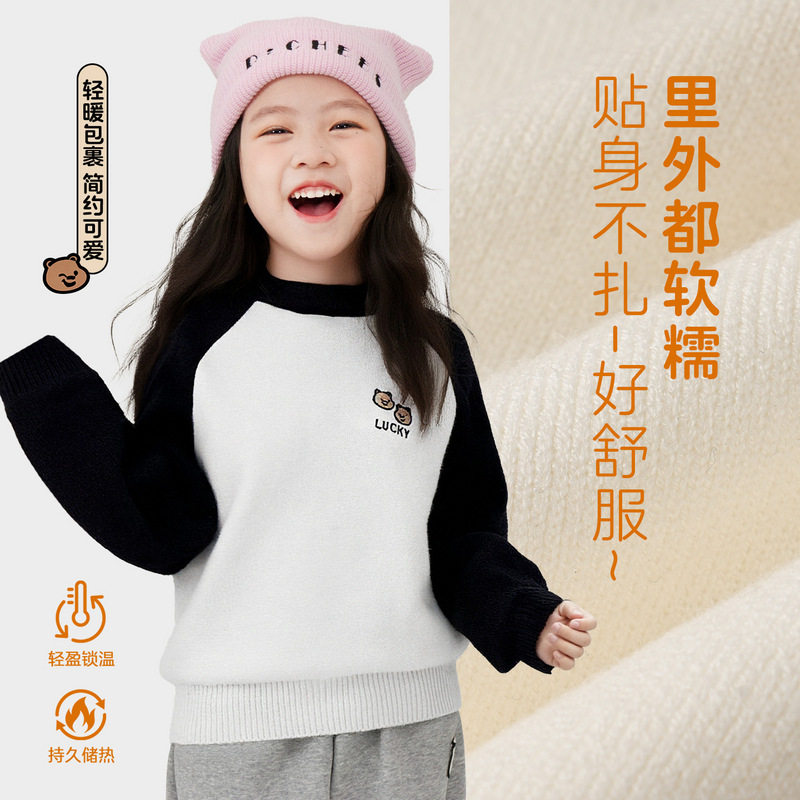图图小象童装女童加厚毛衣儿童2025新款简约中大童内搭可外穿上衣