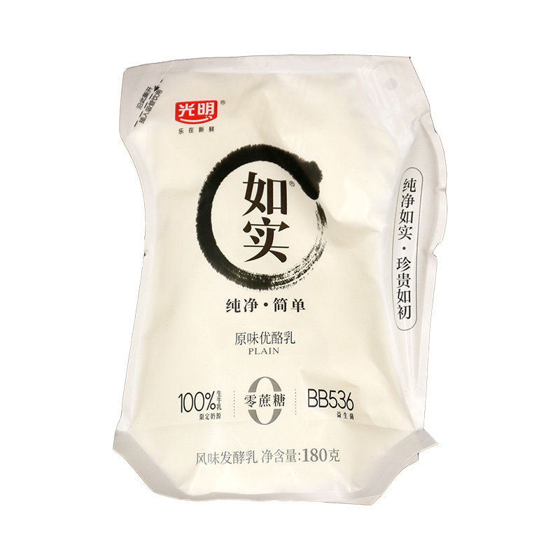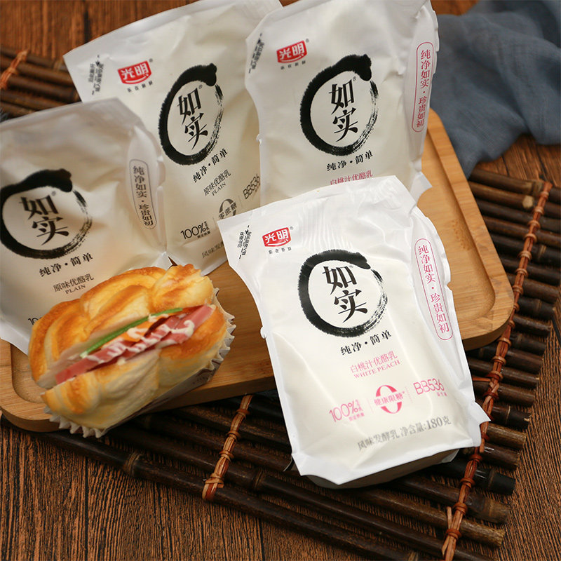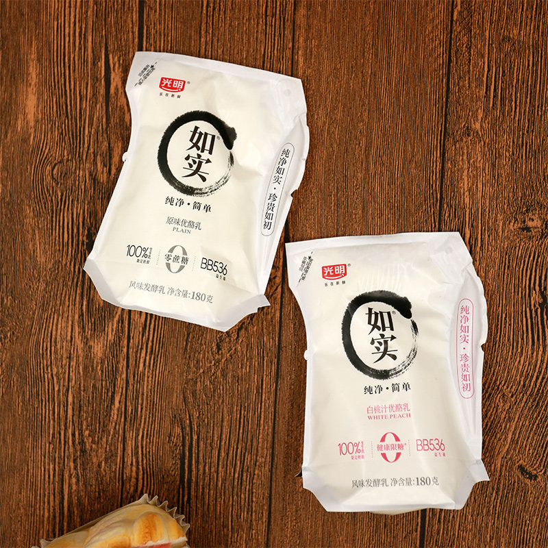 光明如实白桃汁味180g/袋酸奶0蔗糖原味优酪乳风味发酵乳