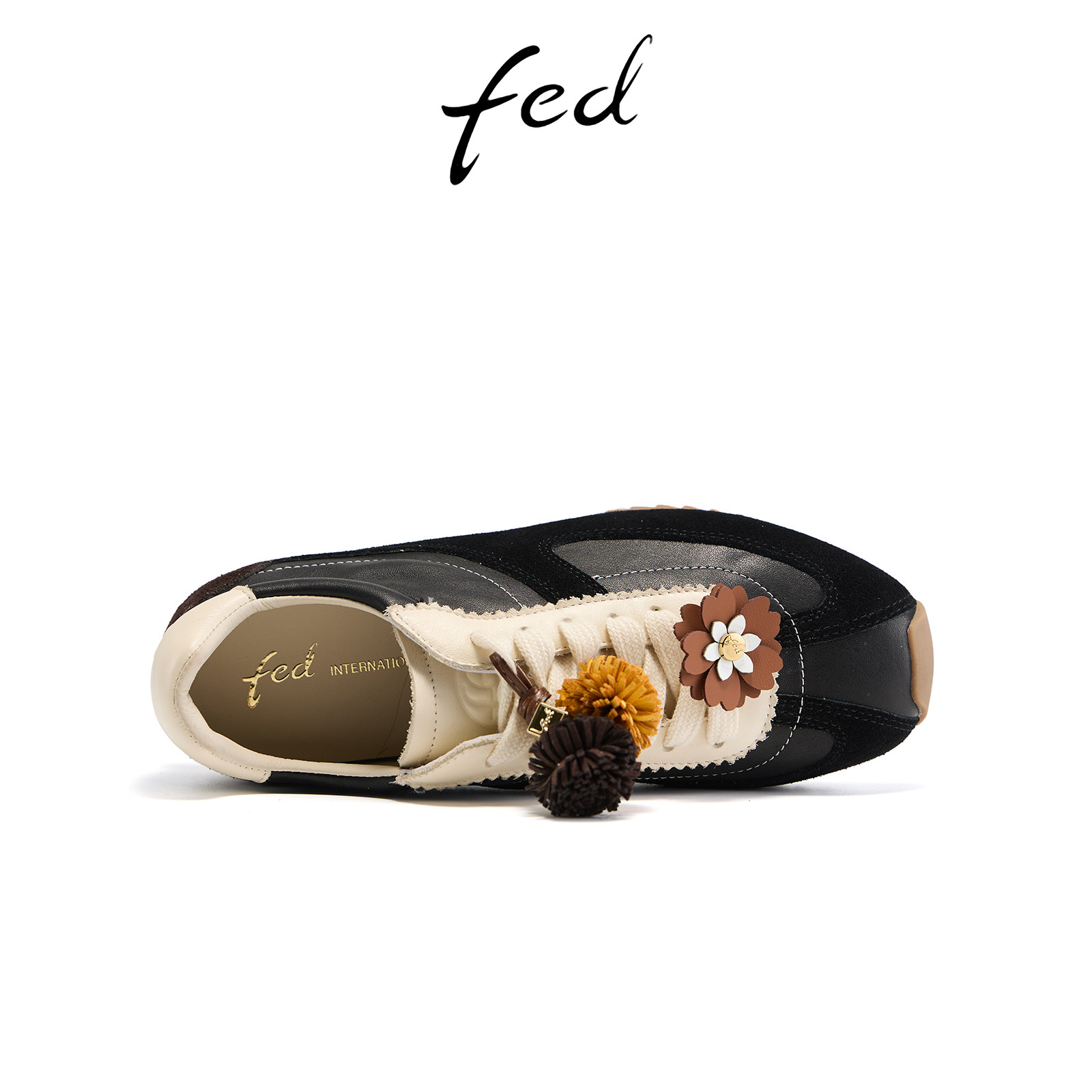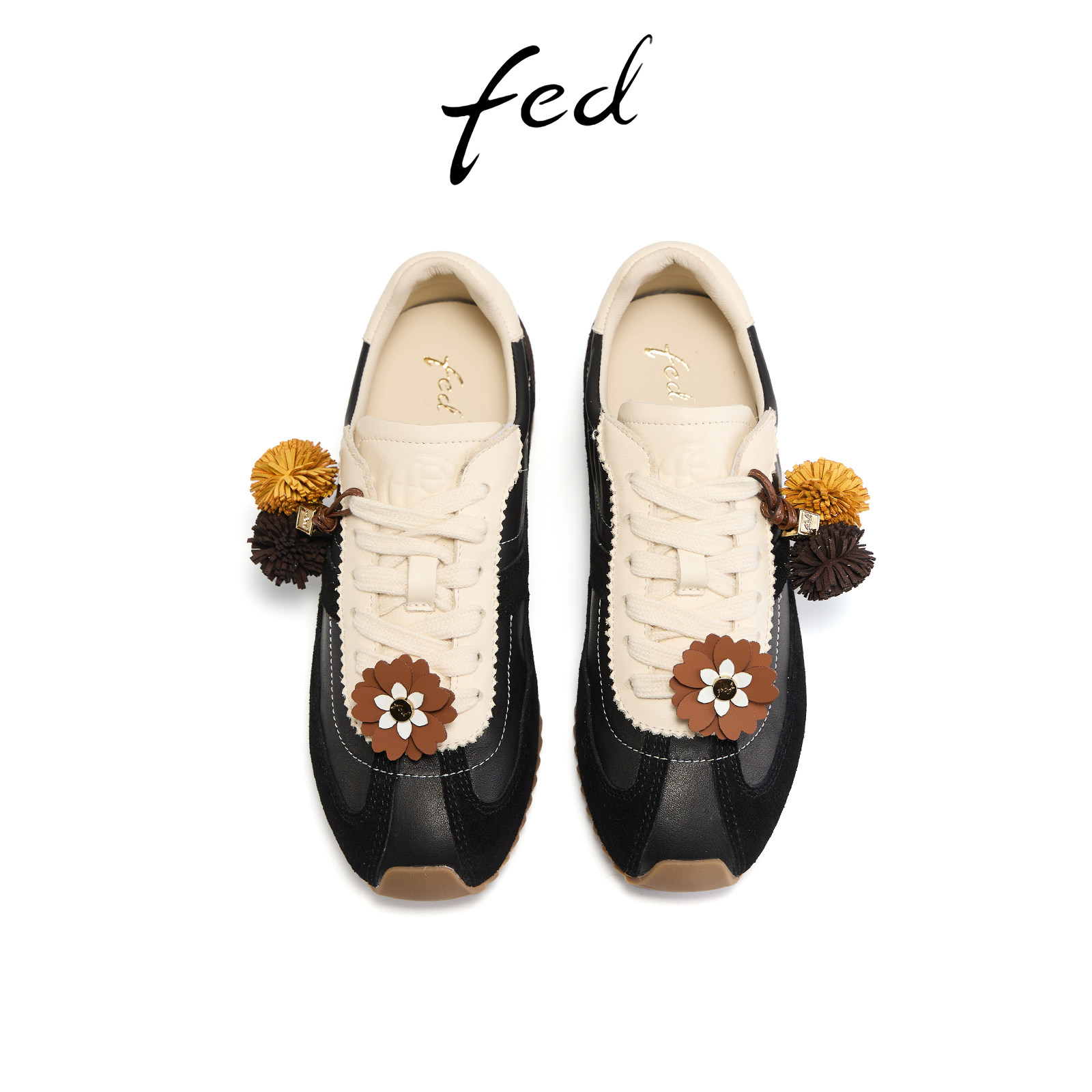 fed时尚阿甘鞋春季新款女鞋厚底德训鞋花朵休闲鞋女款S1013-ZC308