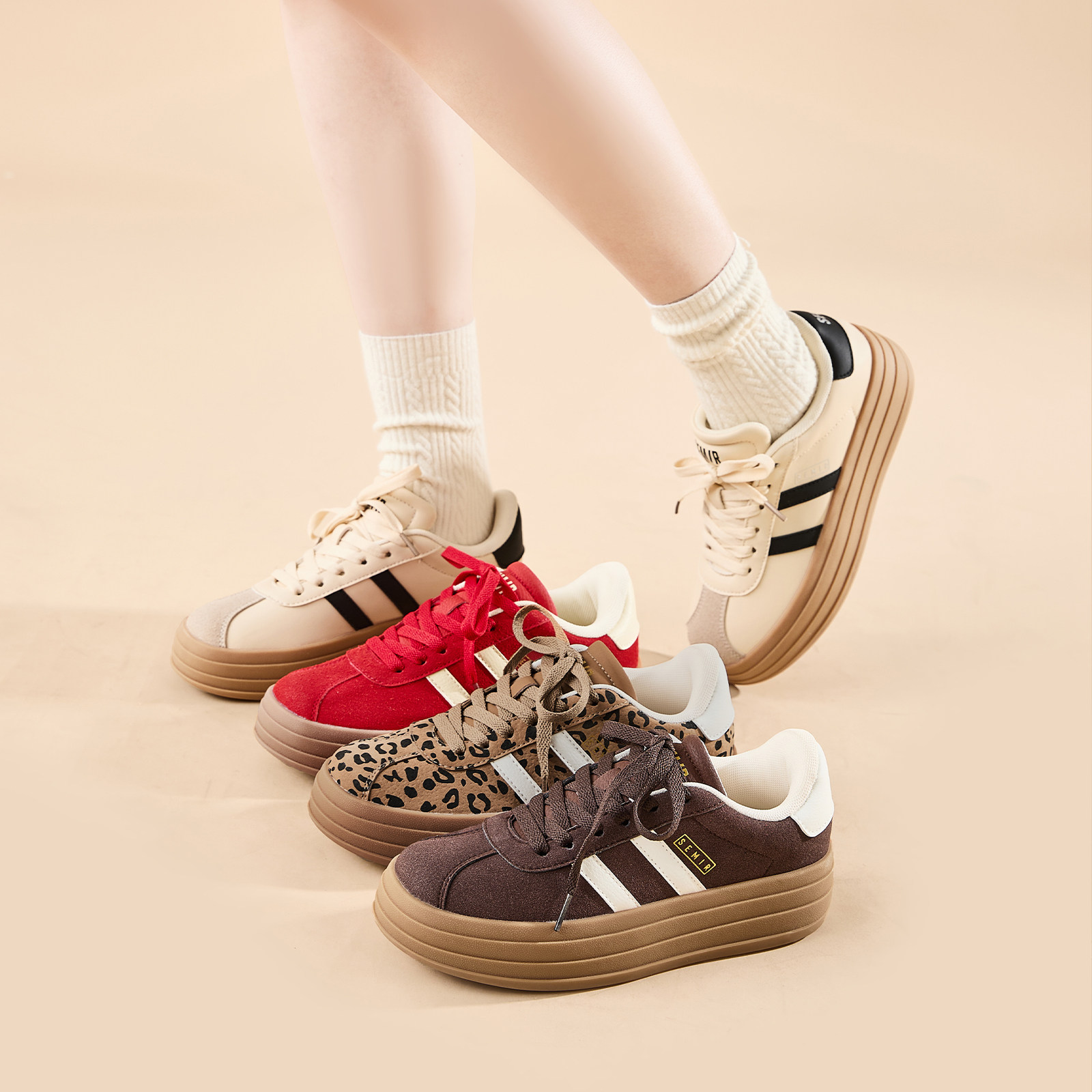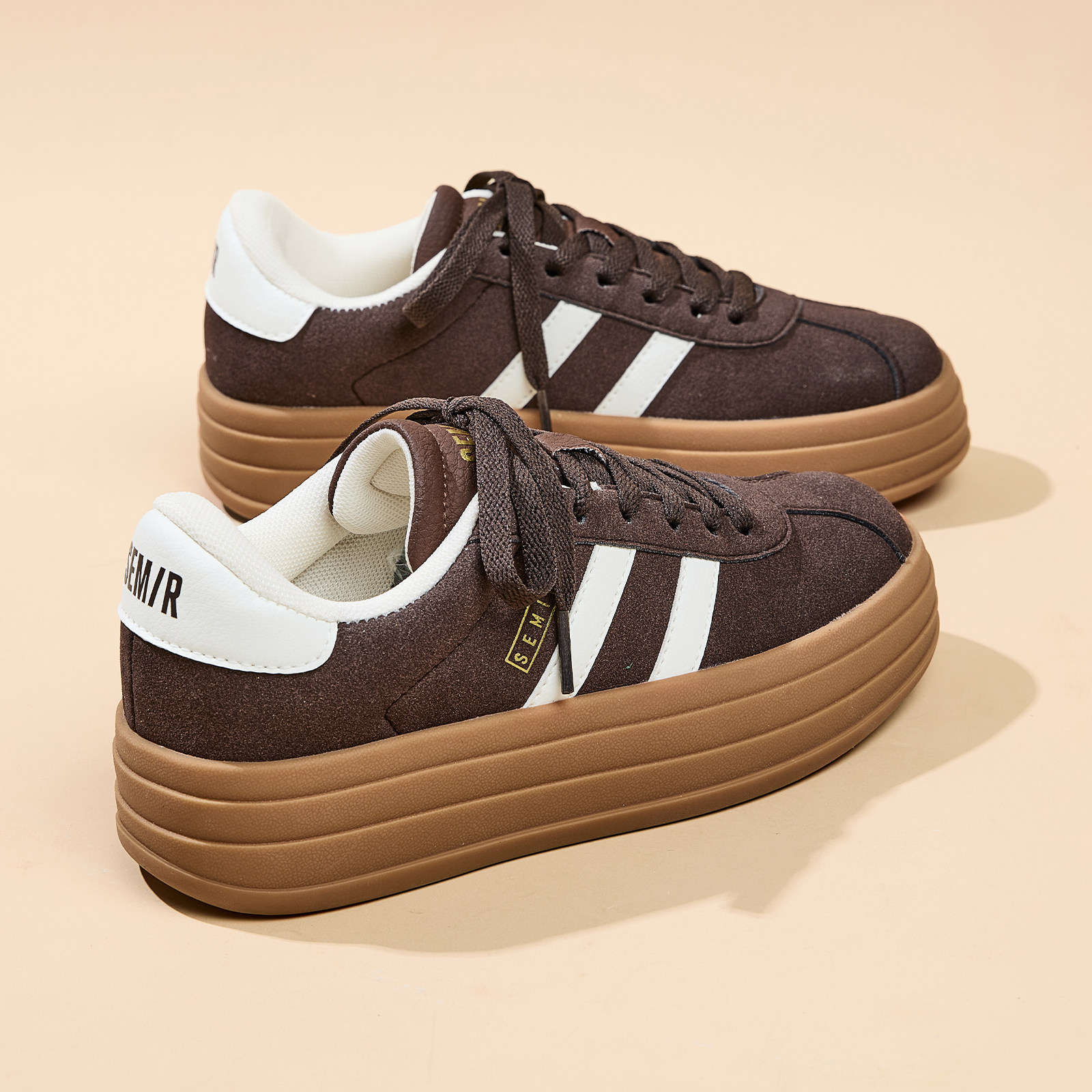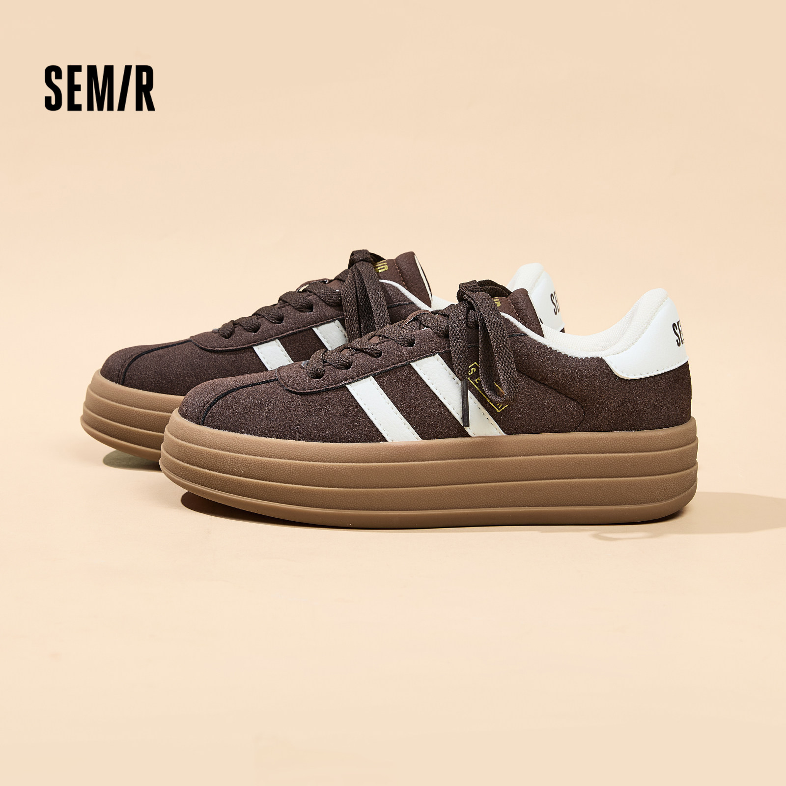 Semir女鞋厚底德训鞋女2026春季新款休闲板鞋增高百搭棕色运动鞋