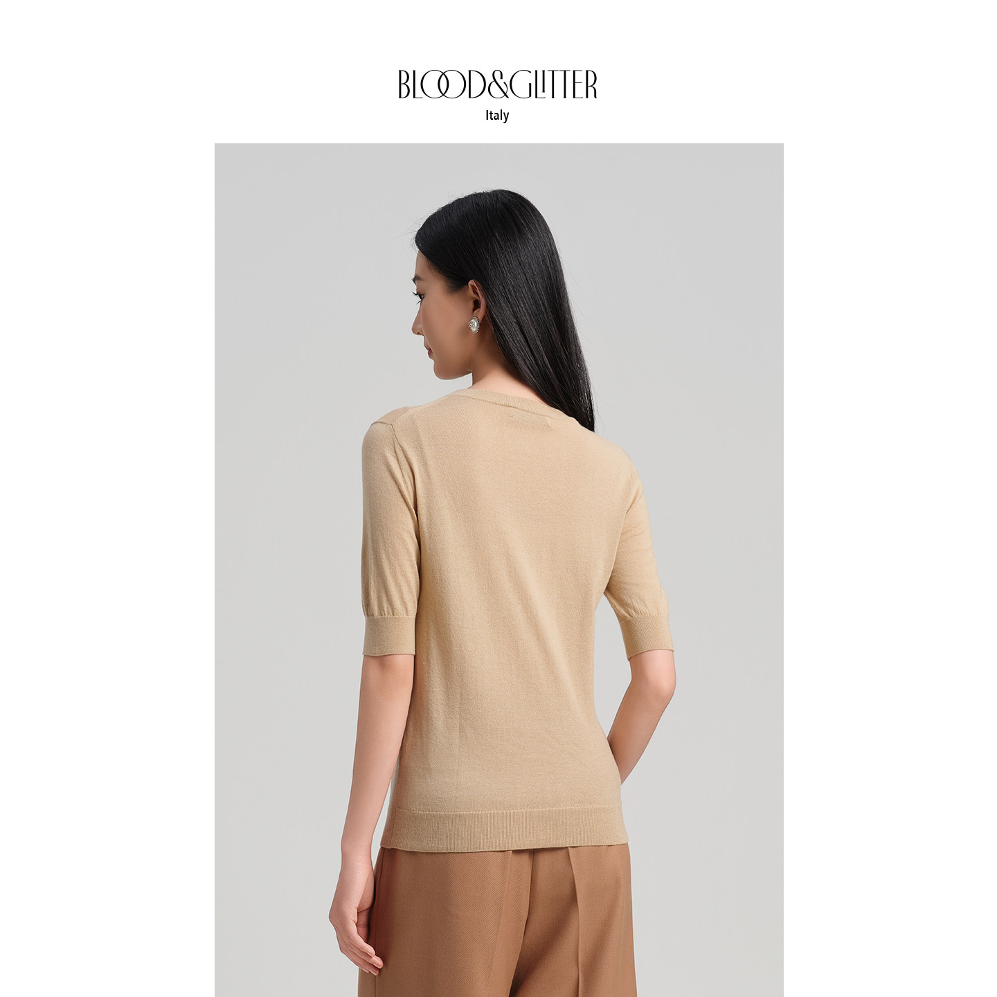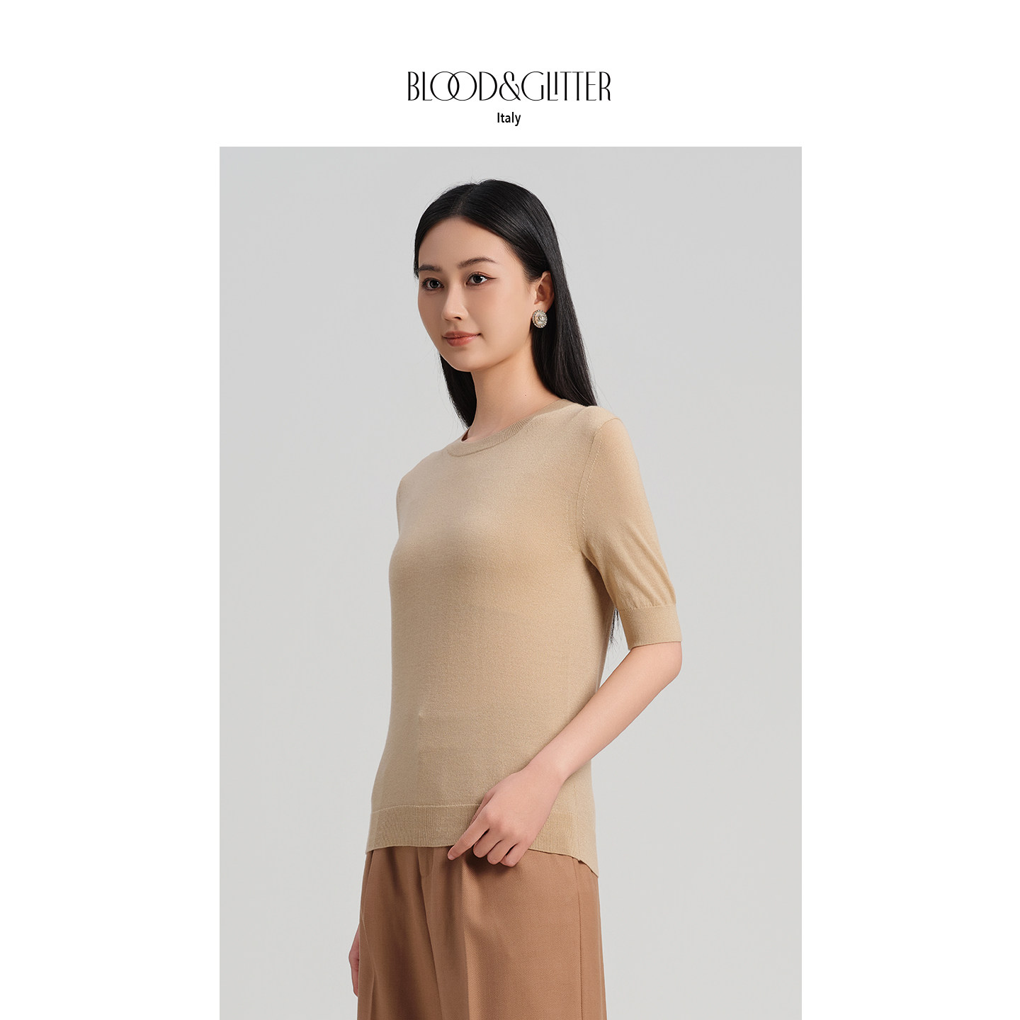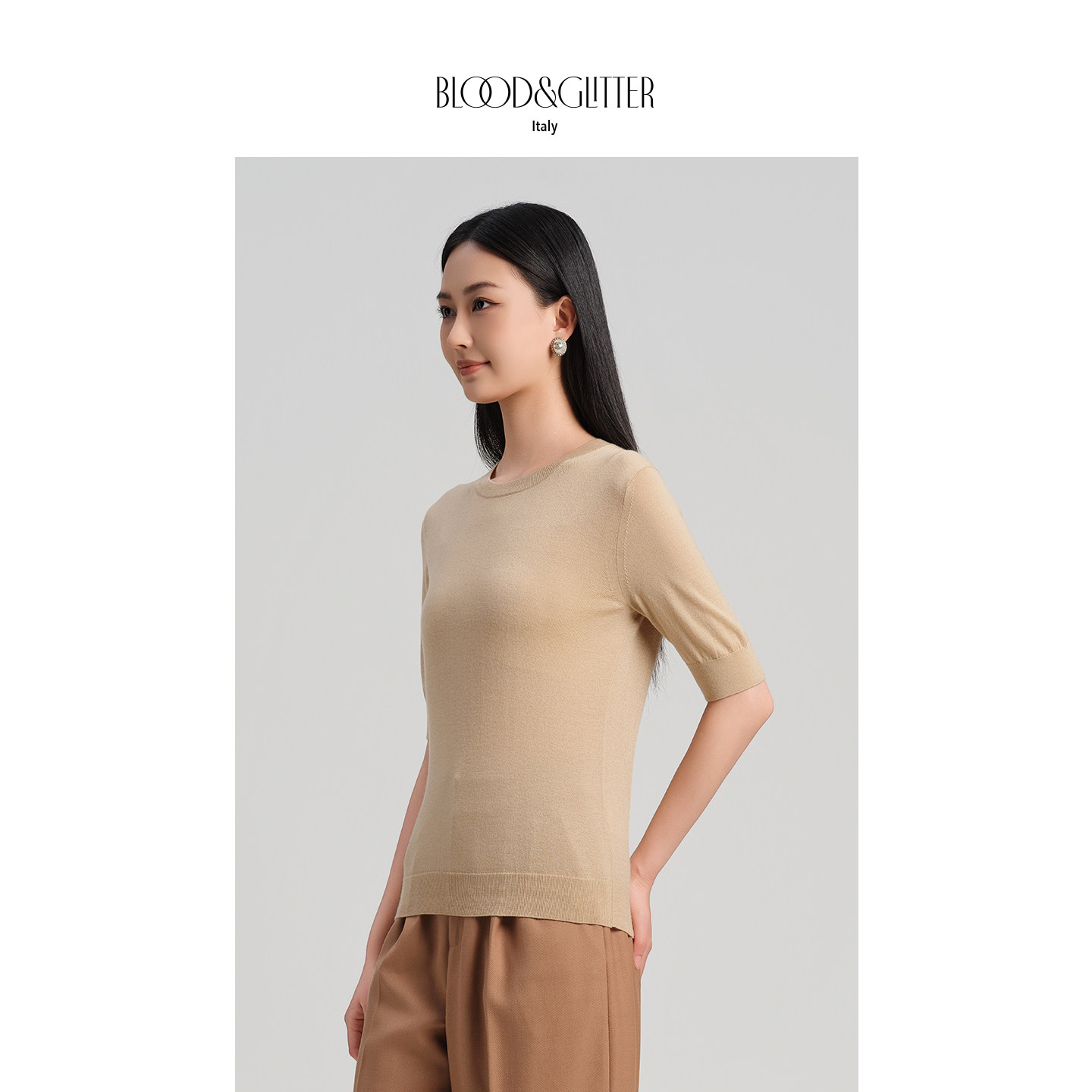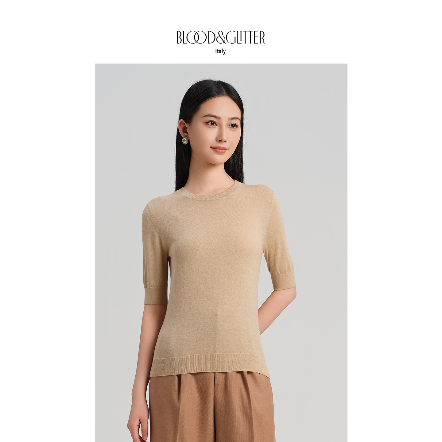 毛衣女款2026秋冬羊毛简约修身圆领新款小个子短袖针织高级感内搭