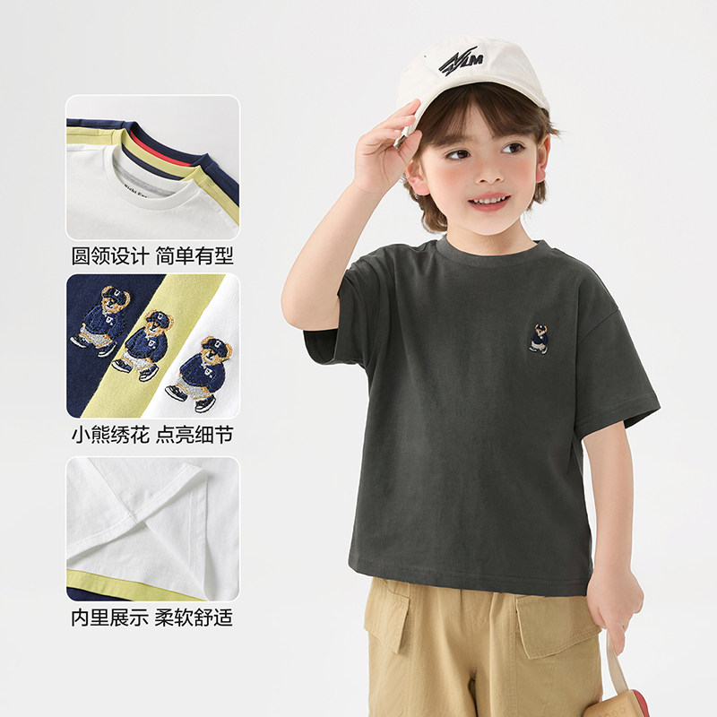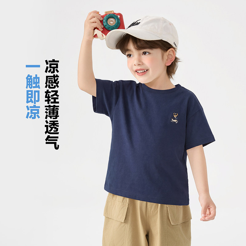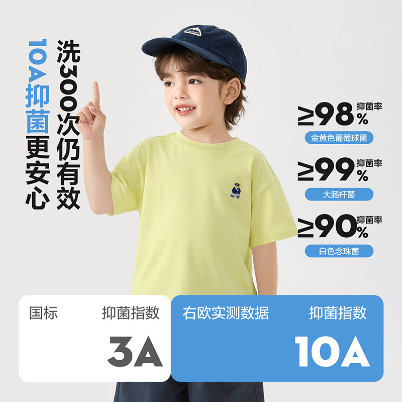 右欧童装儿童夏季纯棉短袖T恤宝宝凉感透气夏装上衣男童抑菌内搭