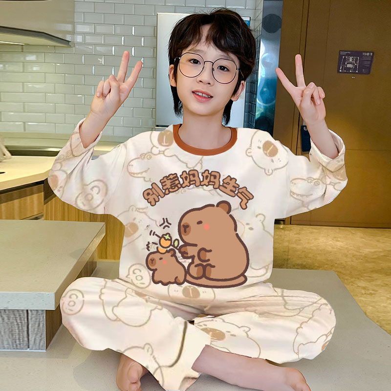 2025新款儿童睡衣男童春秋季长袖纯棉中大童男孩青少年家居服套装