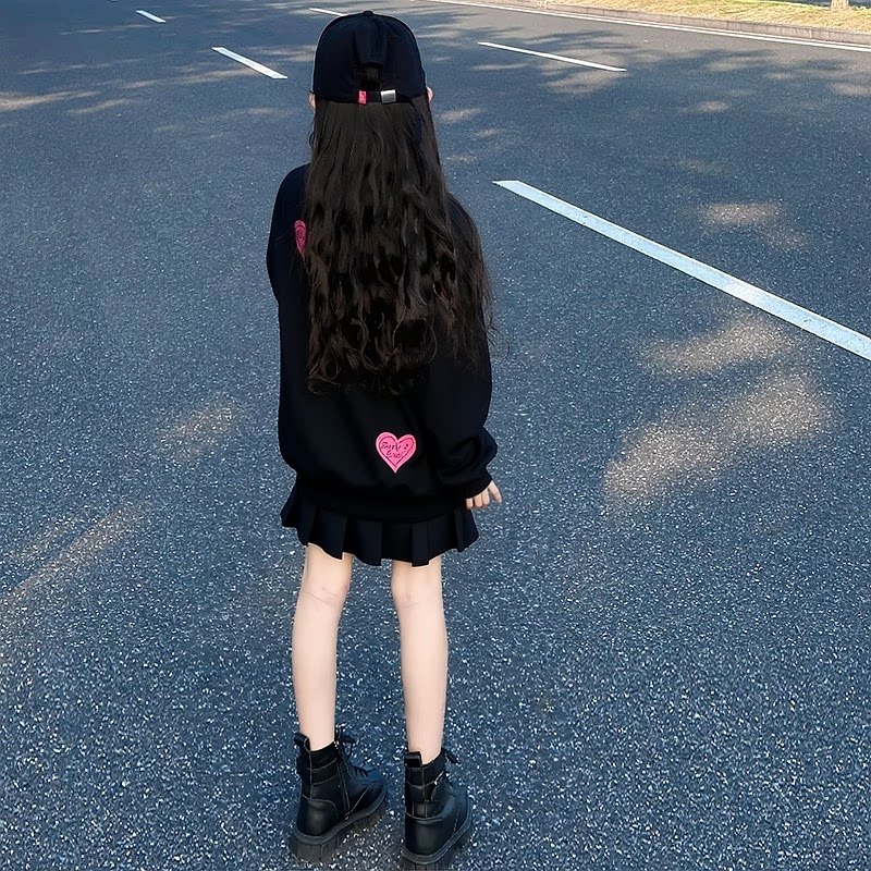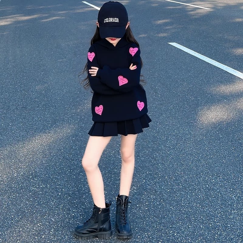 女童爱心卫衣2026春季新款中大儿童洋气时髦潮搭百褶半身裙两件套