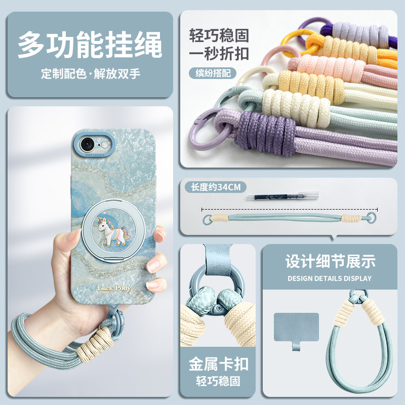 适用苹果17e手机壳iPhone17E新款带挂绳16e保护套磁吸IPHONE支架ip硅胶防摔iPhone16E马年高级感2026女款手提