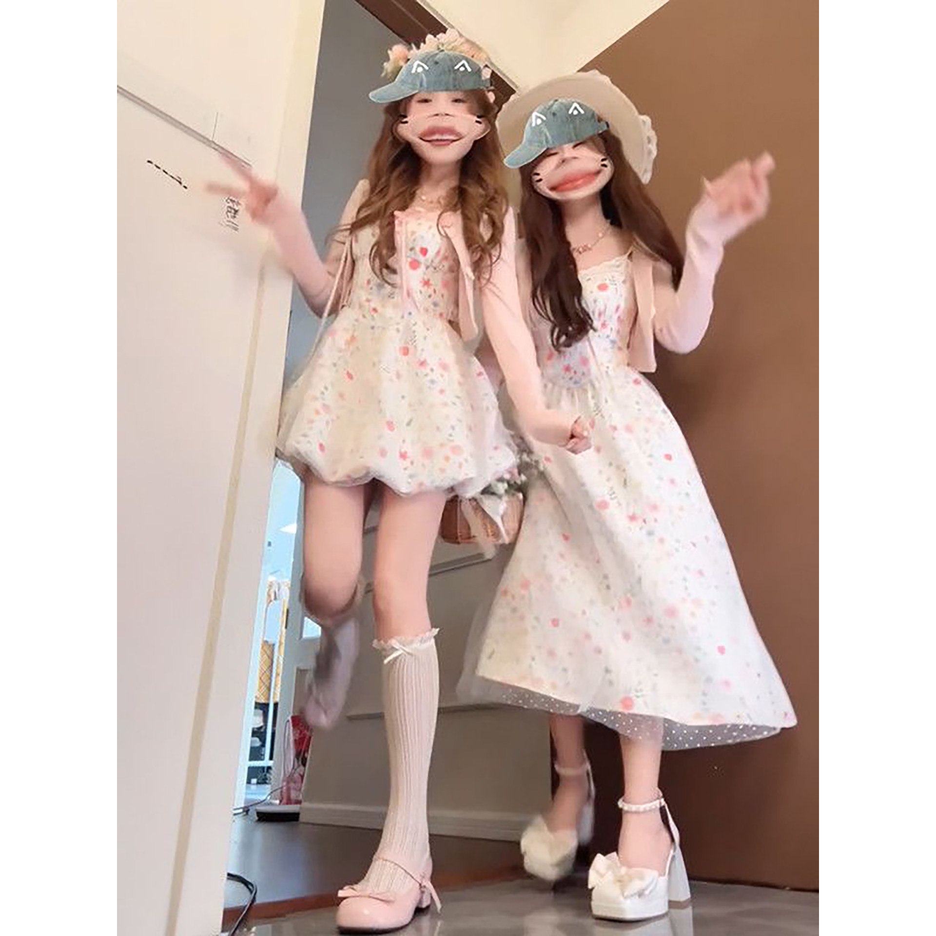 2026春季新款闺蜜装甜美碎花吊带连衣裙女学生防晒开衫上衣两件套