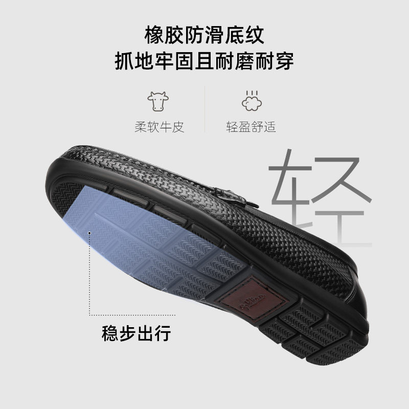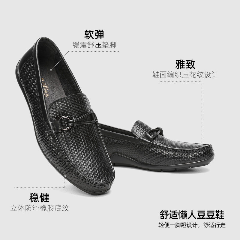 金利来男鞋 春季新款真皮商务乐福鞋男士懒人一脚蹬豆豆鞋男透气