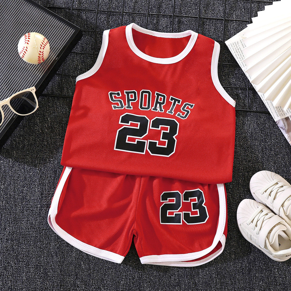 儿童运动套装男童夏季蓝球服女童速干宝宝背心两件套衣服中小童夏
