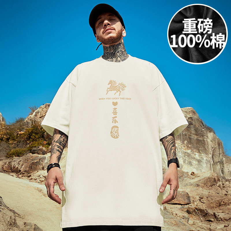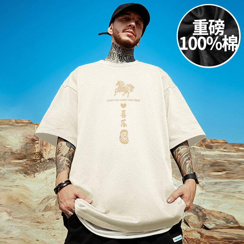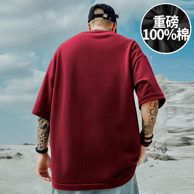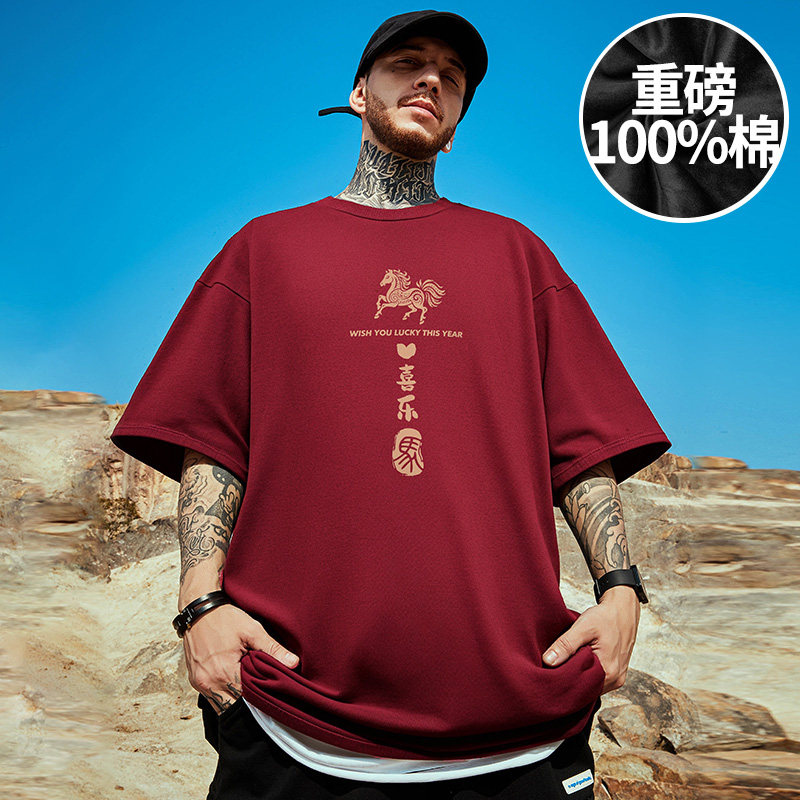 红色短袖t恤男胖子2026新款纯棉夏季青少年百搭大码衣服半袖潮流