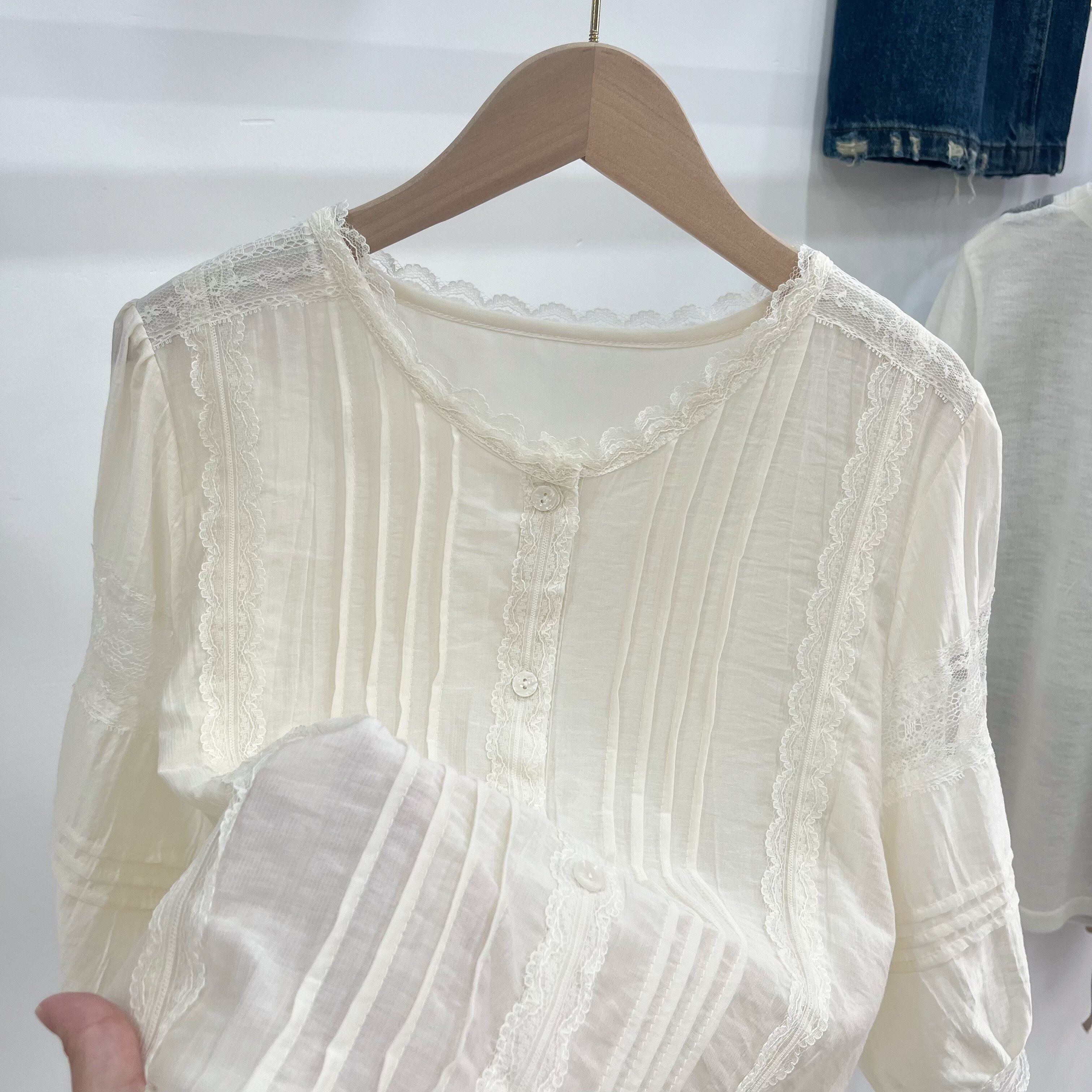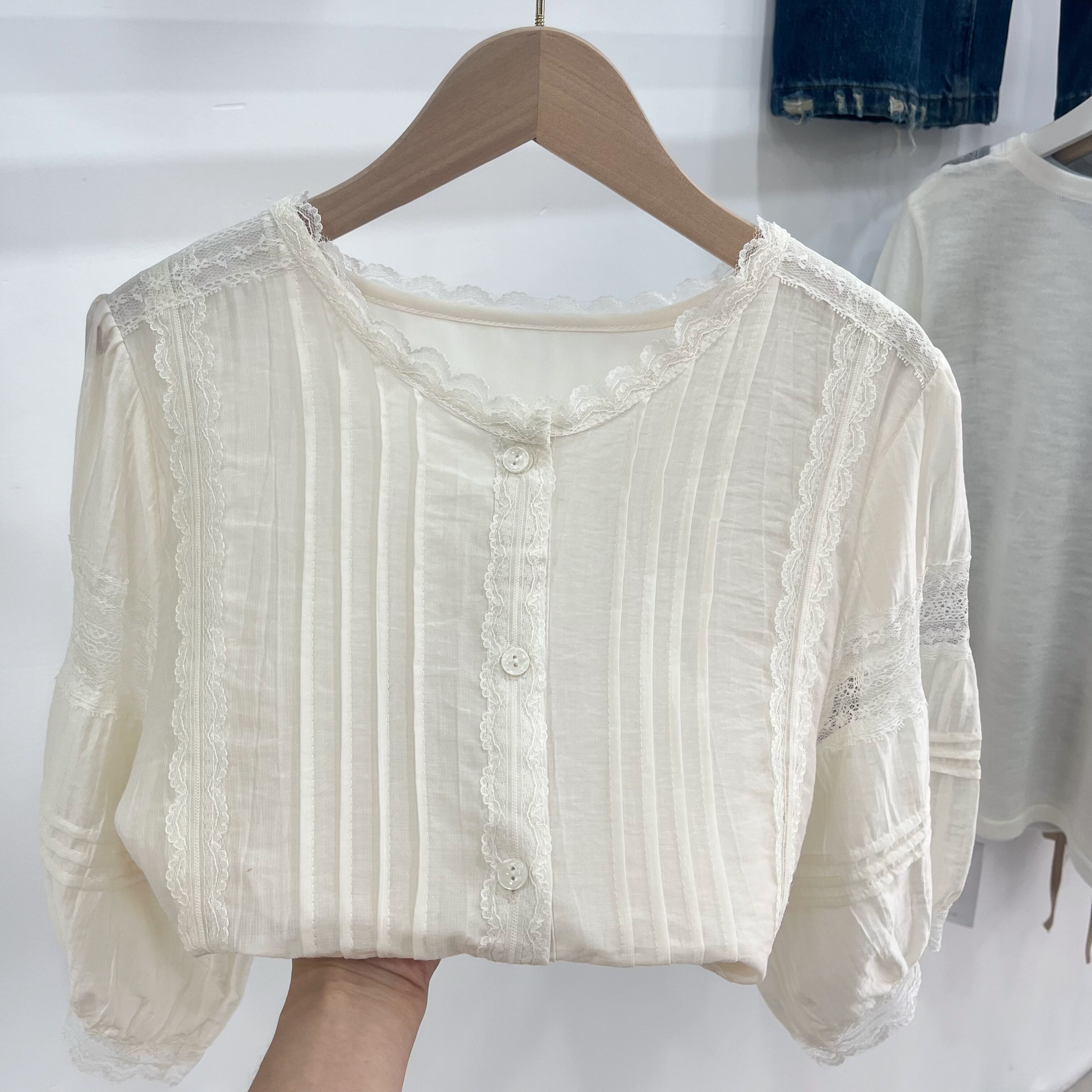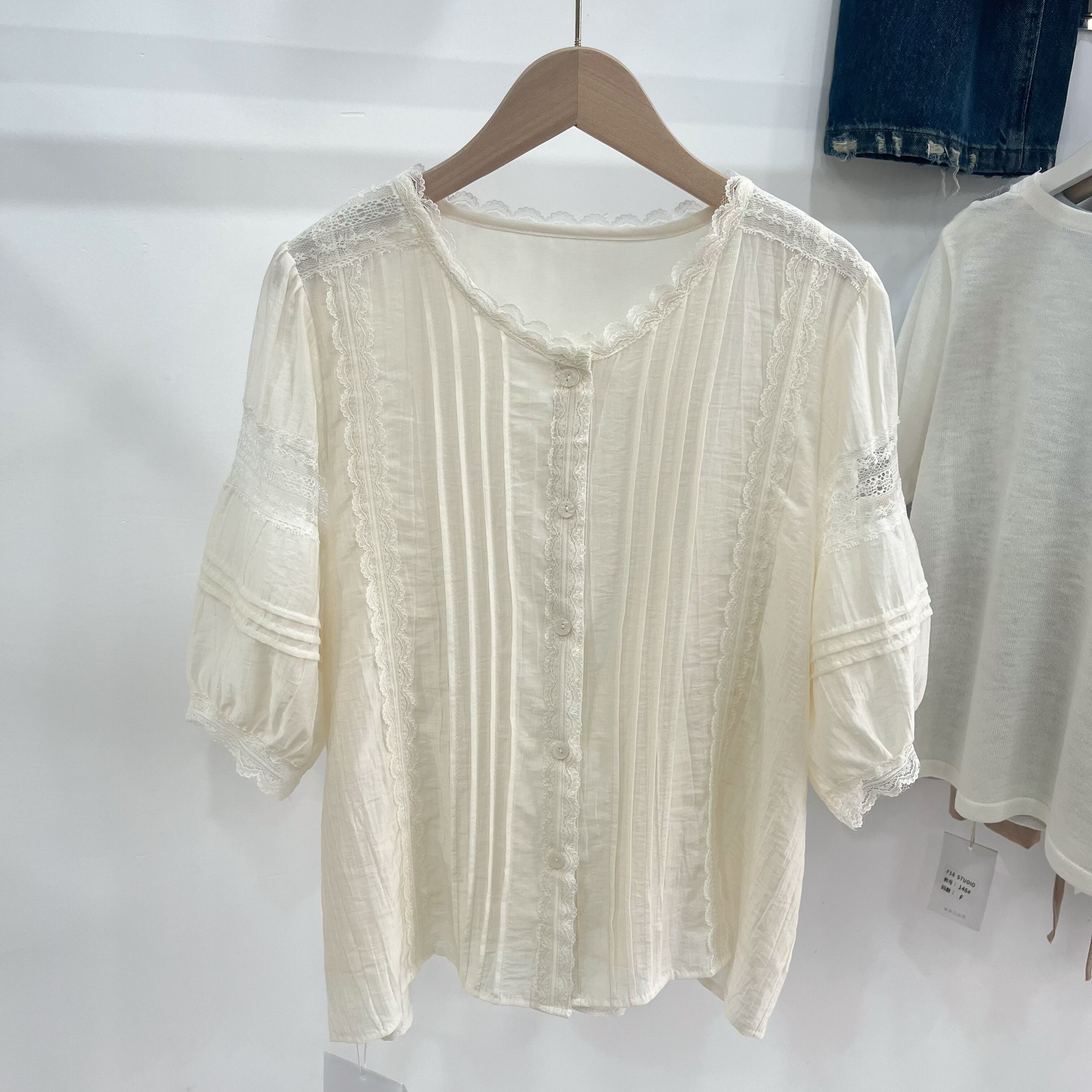 配半身裙子的洋气小衫衬衫女款2026新款夏季蕾丝边中袖宽松上衣夏
