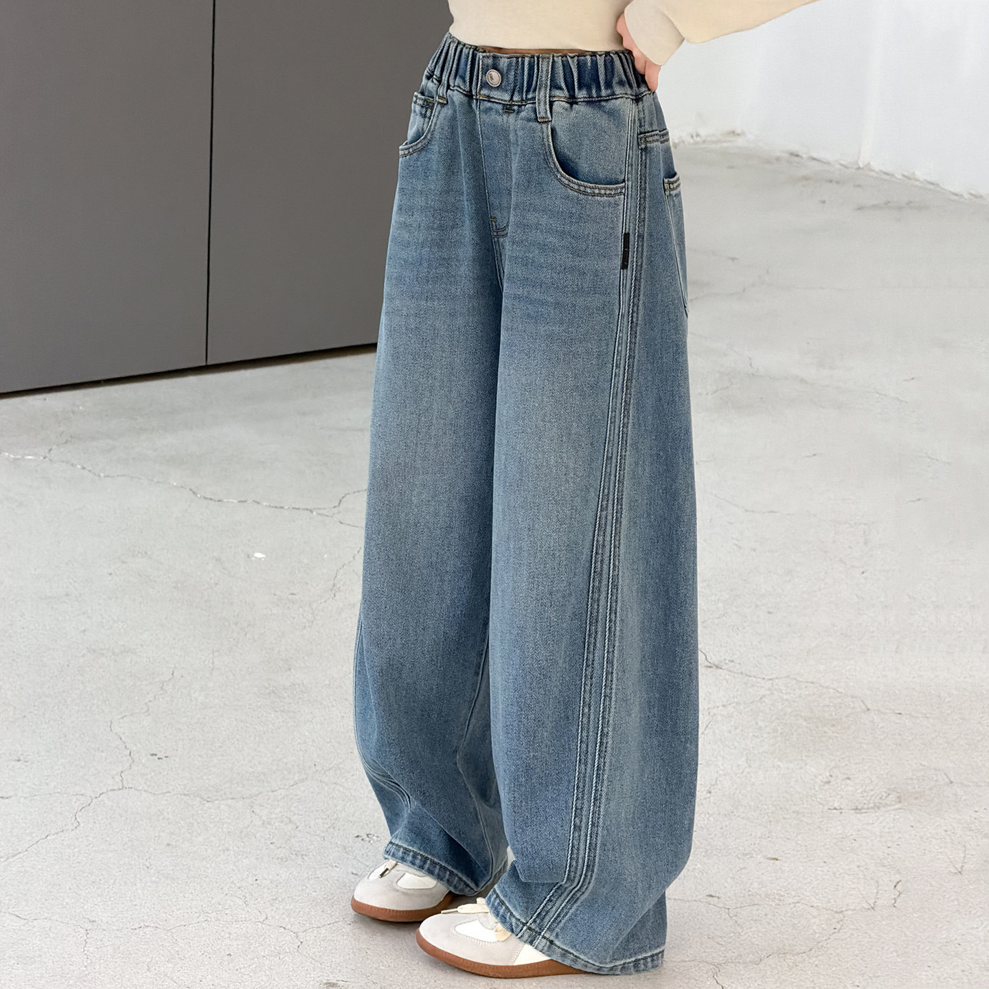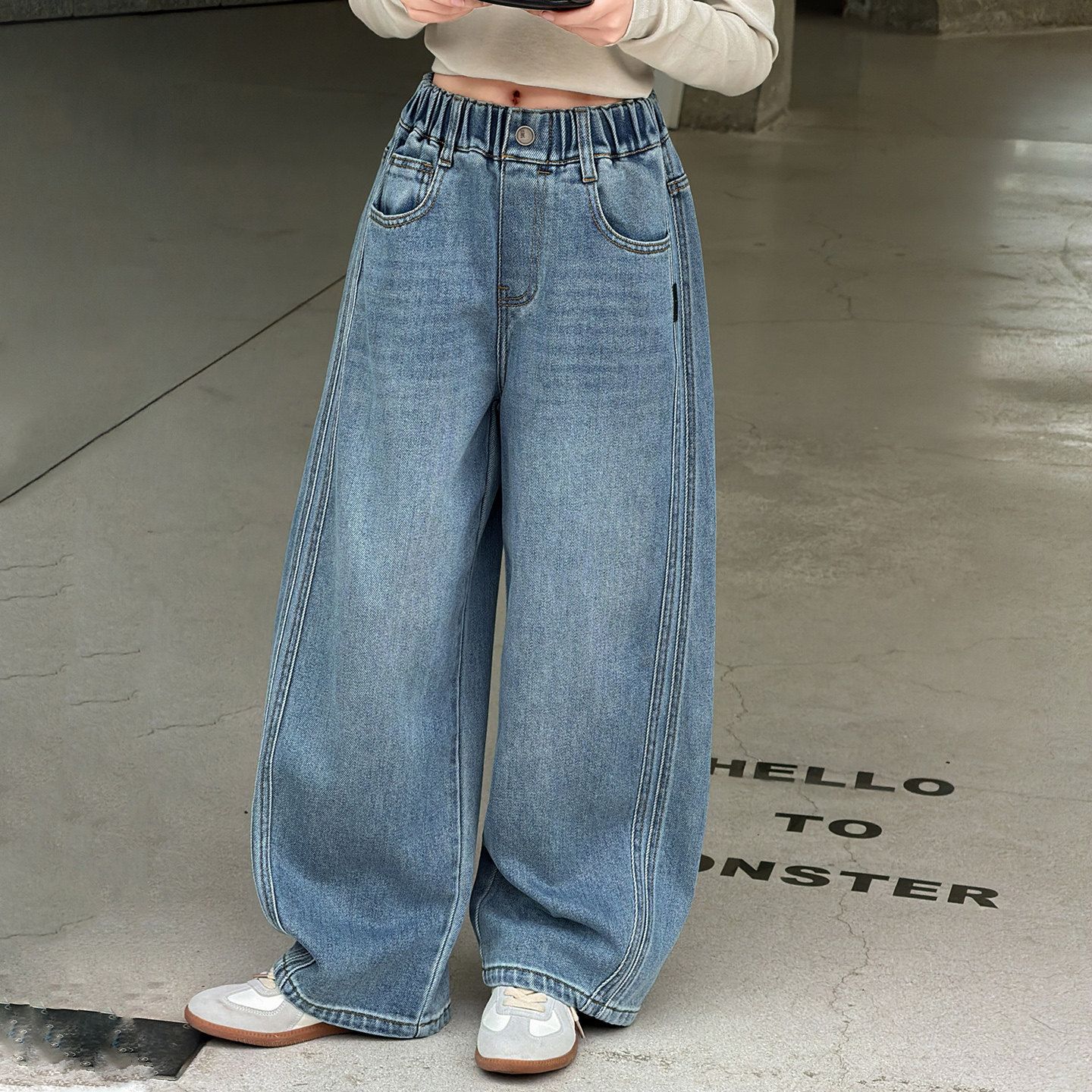 女童春装弯刀牛仔裤2026新款儿童女孩阔腿裤春秋季女大童直筒裤子