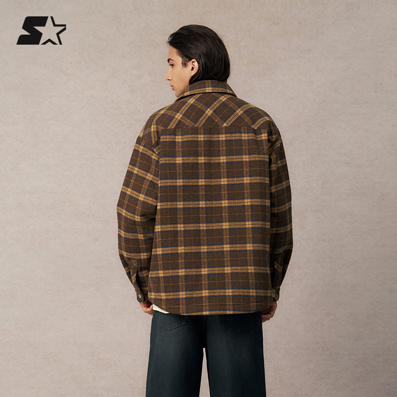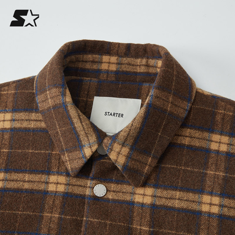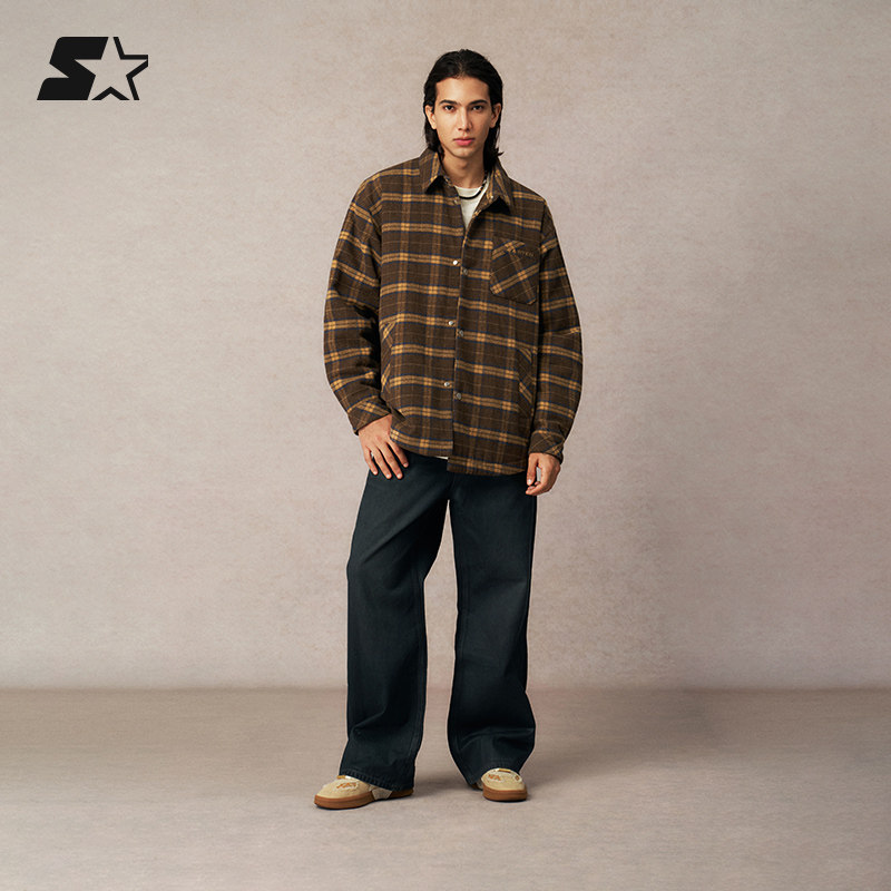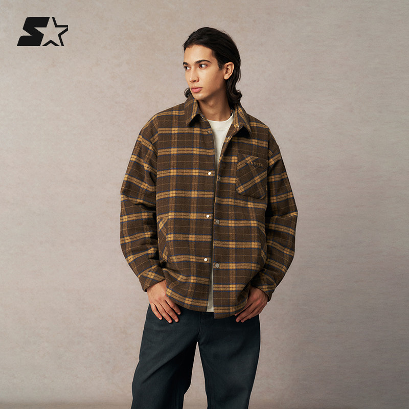 STARTER格纹棉服春秋新款保暖女款衬衫男休闲格子运动上衣外套