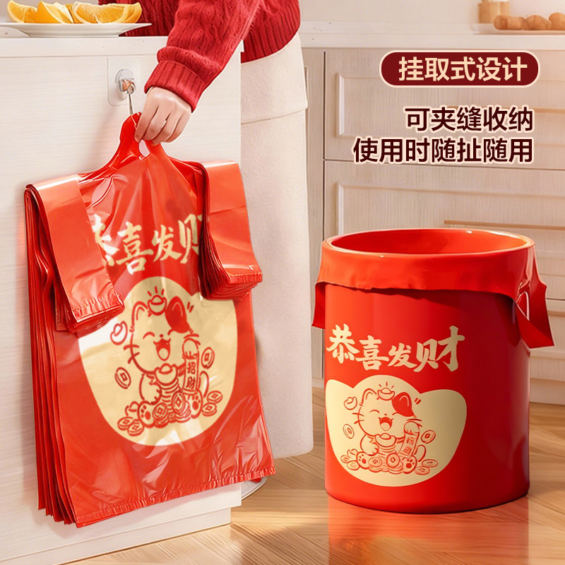 微净垃圾袋家用加厚手提式中大号背心厨房专用塑料袋特厚商用红色