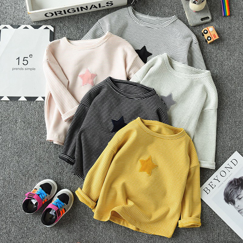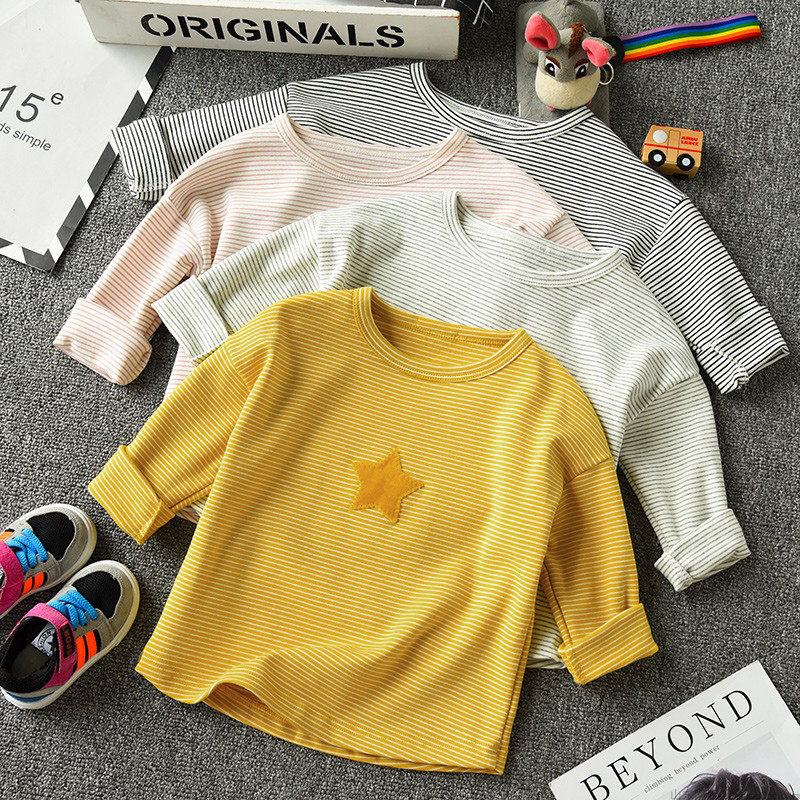 儿童纯棉条纹长袖T恤 宽松蝙蝠袖韩版 圆领上衣 男童女童薄款春秋