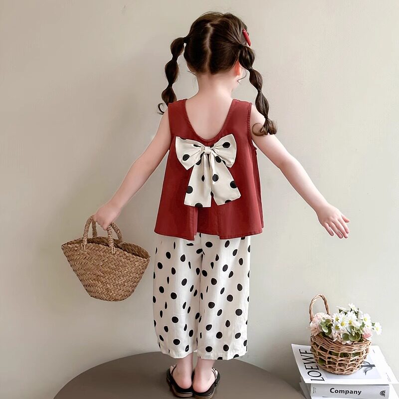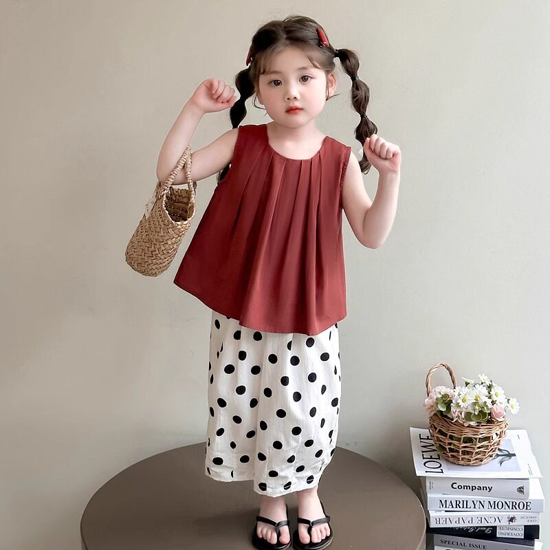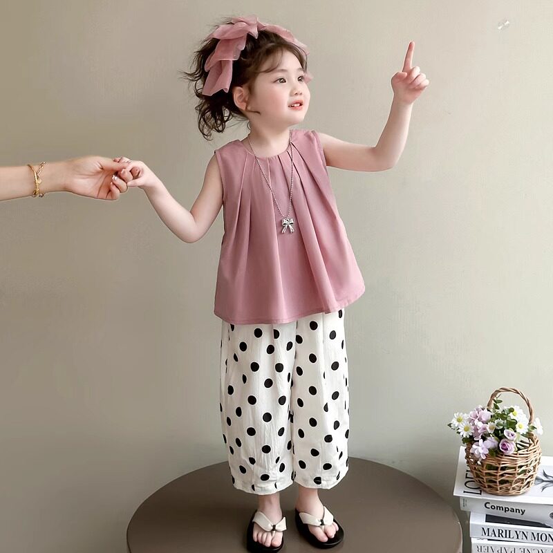 女童夏季套装2026新款无袖背心宝宝薄款夏装波点小女孩时髦两件套