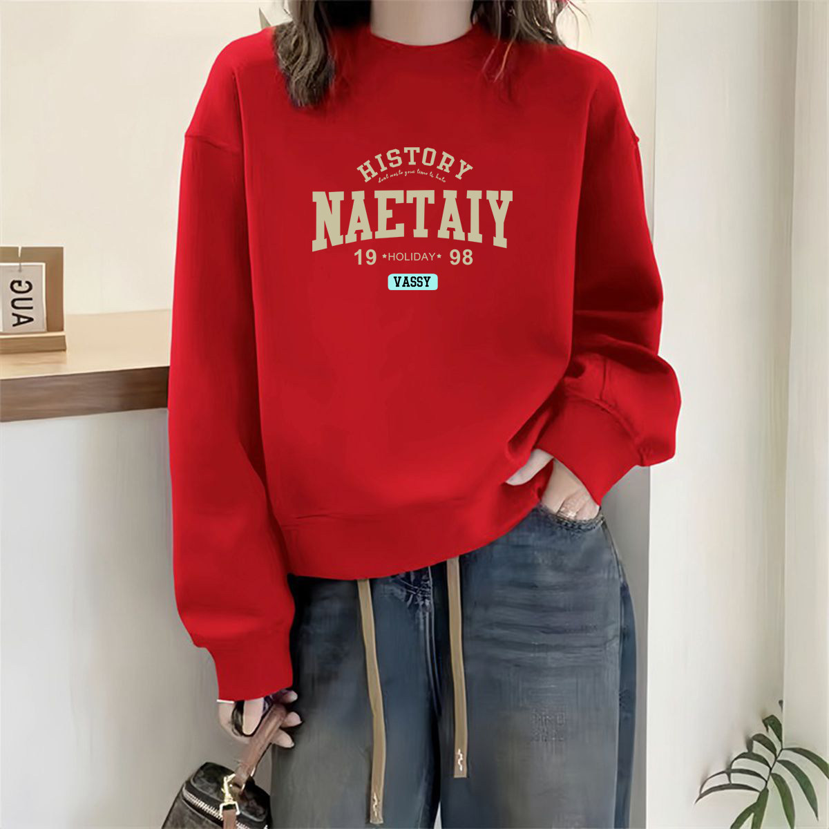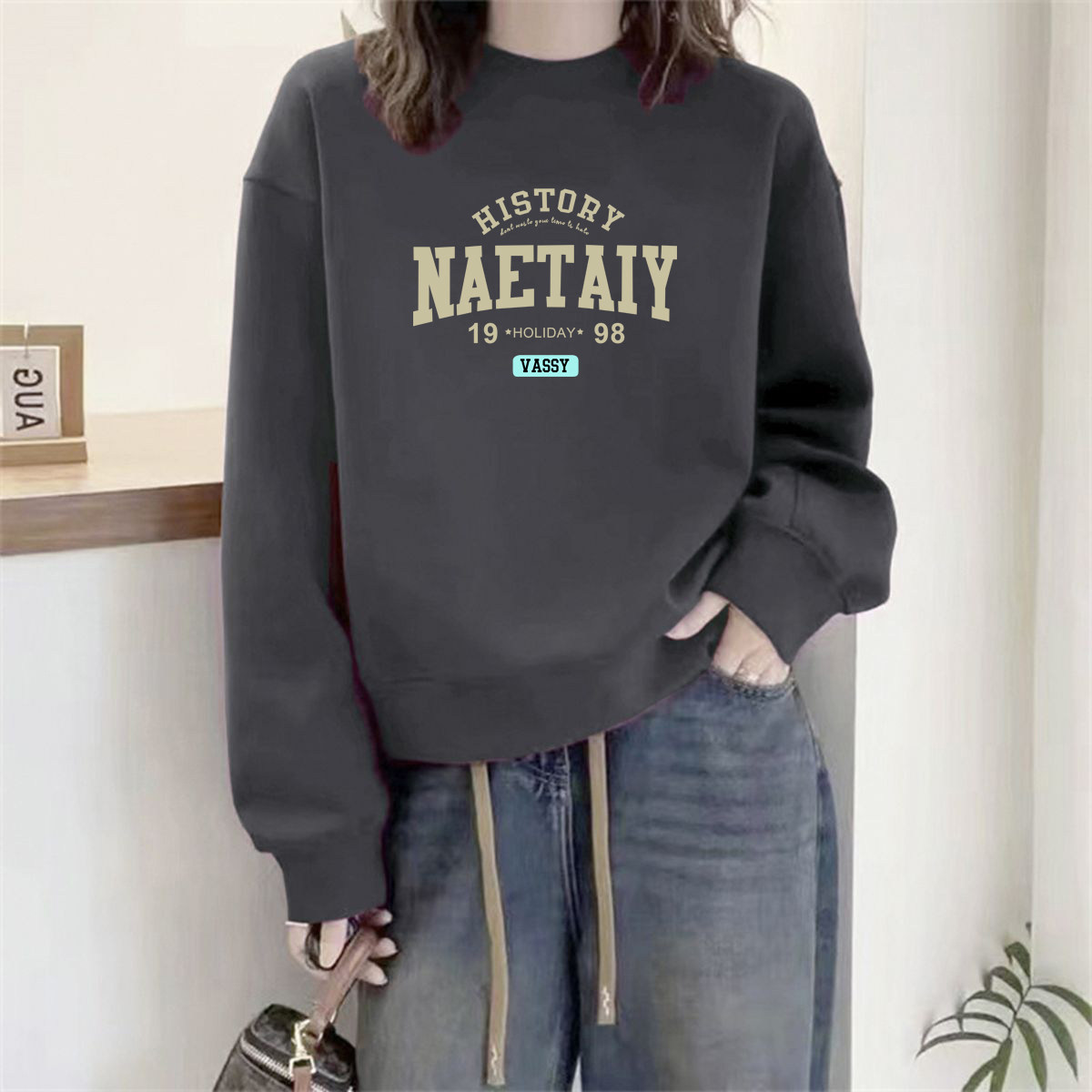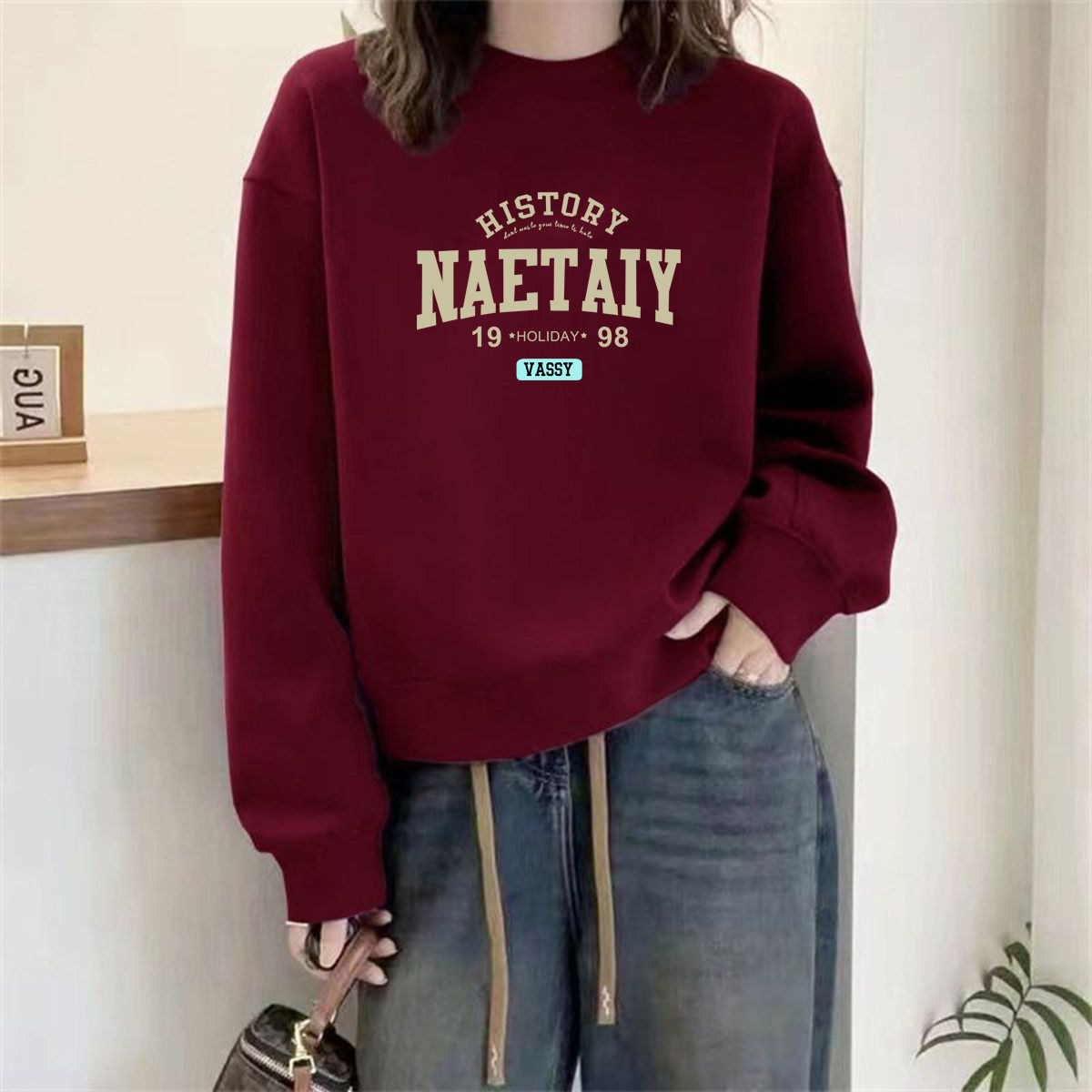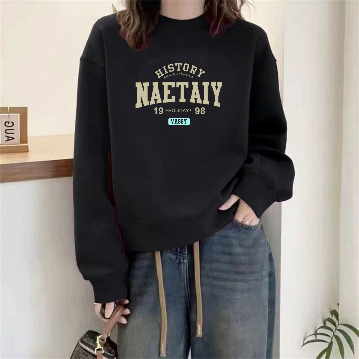 山东即墨纯棉圆领卫衣女秋冬爆款欧货宽松小个子加绒加厚上衣外套