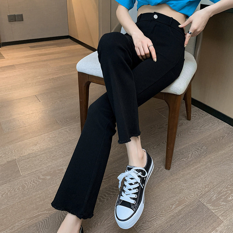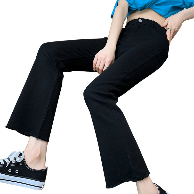 黑色高弹力小个子款喇叭裤女款2026春装新款高腰休闲九分微喇裤子
