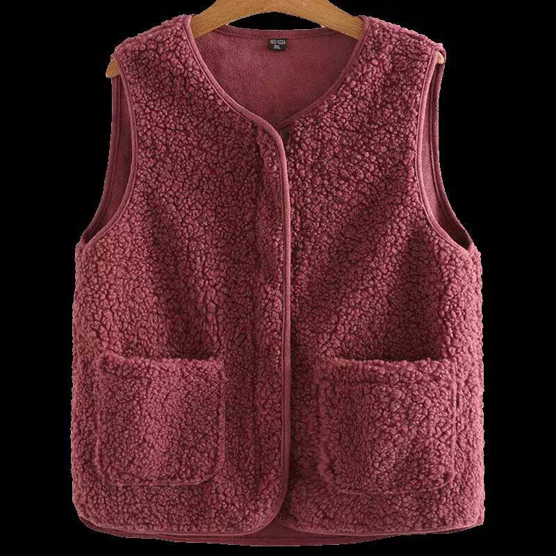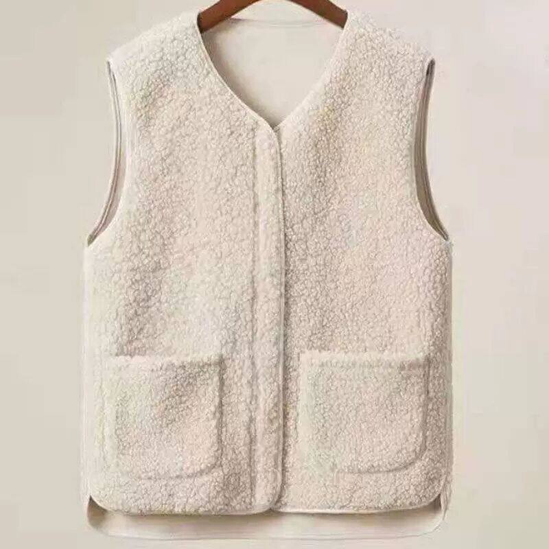 女式羊羔毛马甲新款2023秋冬季妈妈加绒加厚大码马夹外套冬款背心