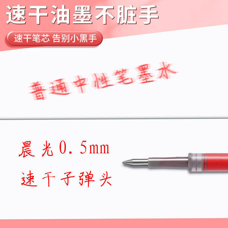 晨光按动红笔芯g-5替芯正品官方旗舰店子弹头0.5红色按动中性笔替芯学生老师批改作业按动式圆珠笔速干全针管