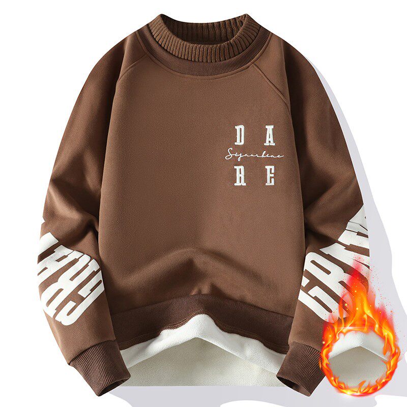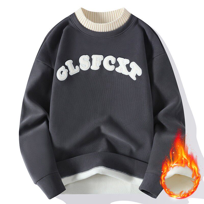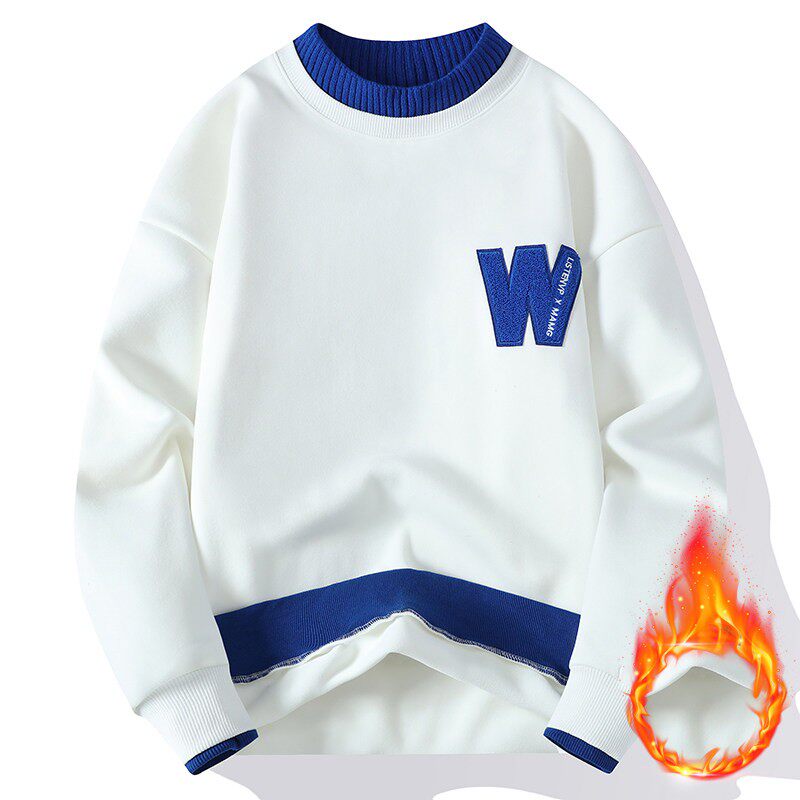 青少年秋冬季加绒卫衣男初中高中学生秋装打底衫帅气大童保暖上衣