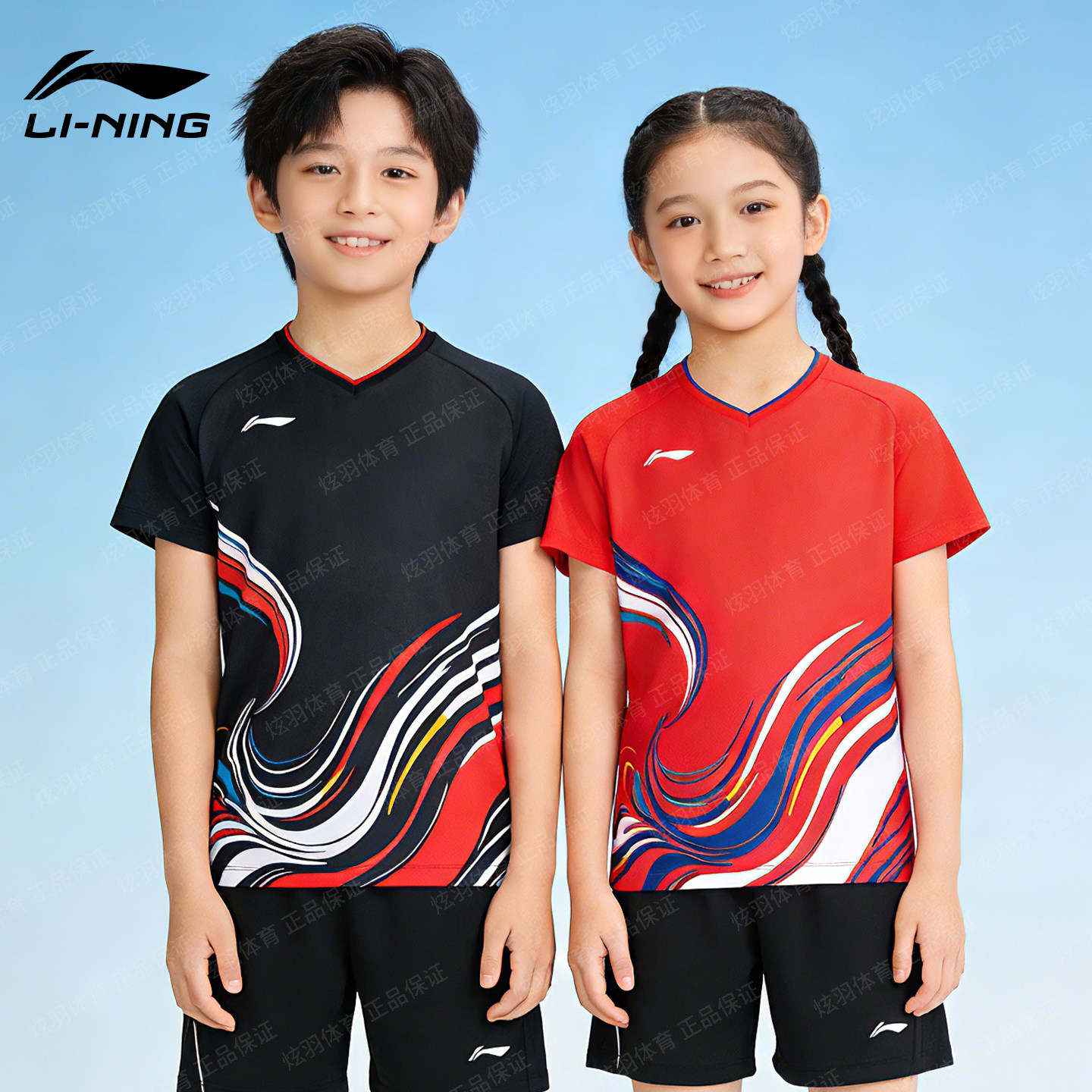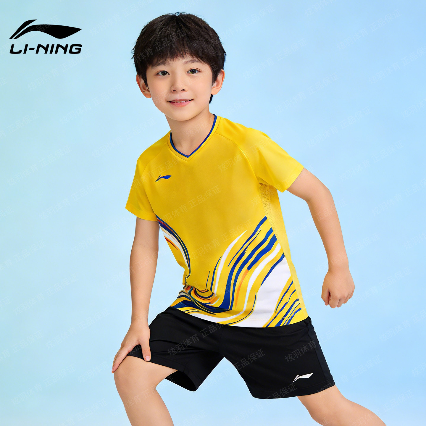 李宁儿童羽毛球服上衣青少年比赛运动短袖男童女孩速干透气T恤