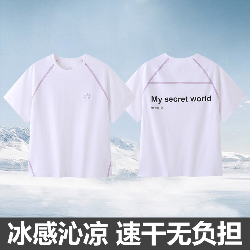 青少年透气运动T恤男女生儿童冰丝夏季款男童短袖男孩休闲速干衣9