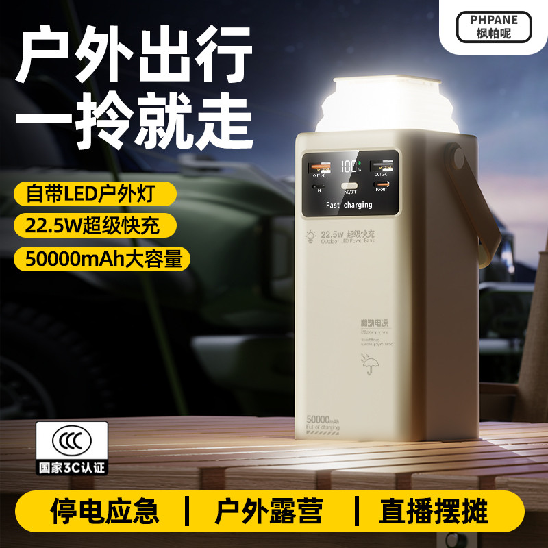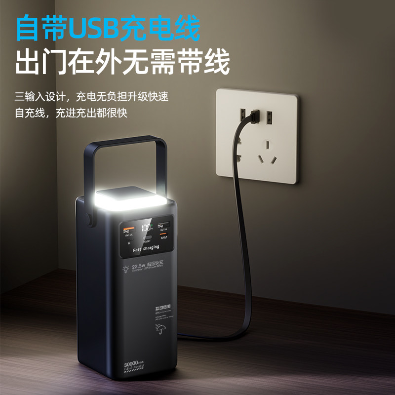311线报网描述:5万毫安容量 22.5W双向快充 自带四线照明灯