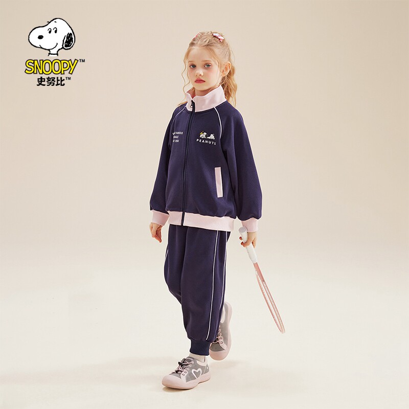 史努比儿童运动套装2025春季新品男童休闲洋气拼色两件套女童薄款