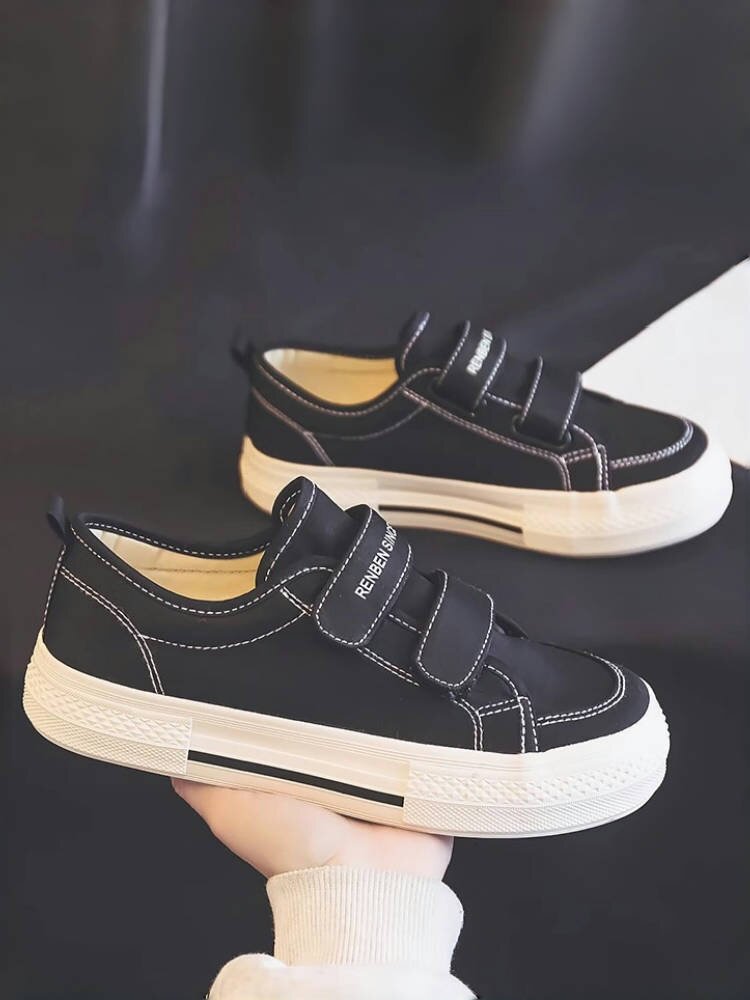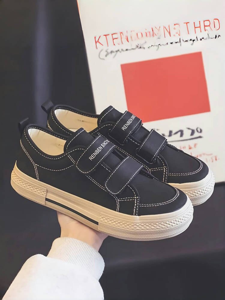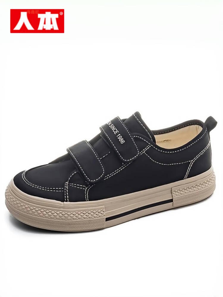人本魔术贴帆布鞋女大码女鞋41厚底板鞋懒人女鞋42休闲运动鞋子43