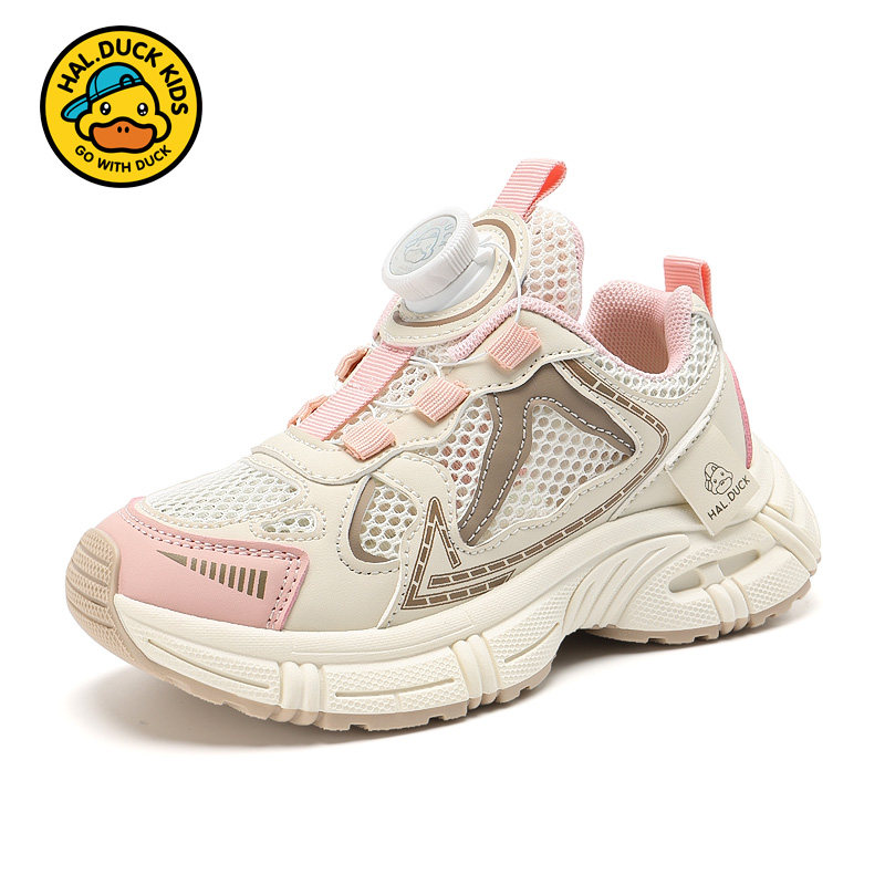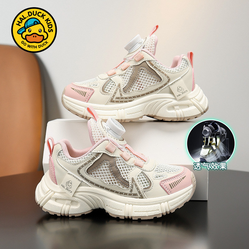 小黄鸭童鞋女童单网鞋2026夏季新款网面透气网鞋男孩纽扣运动鞋潮