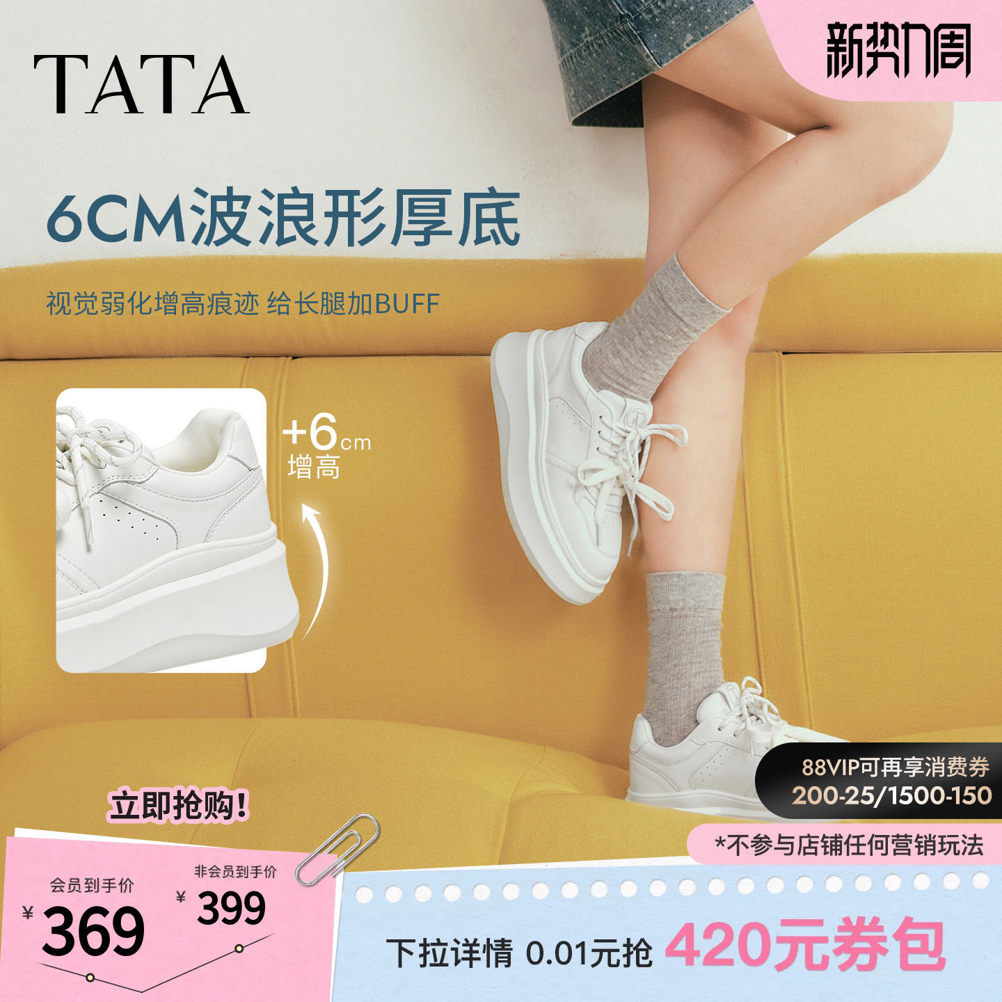 TATA他她女鞋春季商场板鞋子厚底时尚休闲鞋百搭小白鞋GCD12AM6D