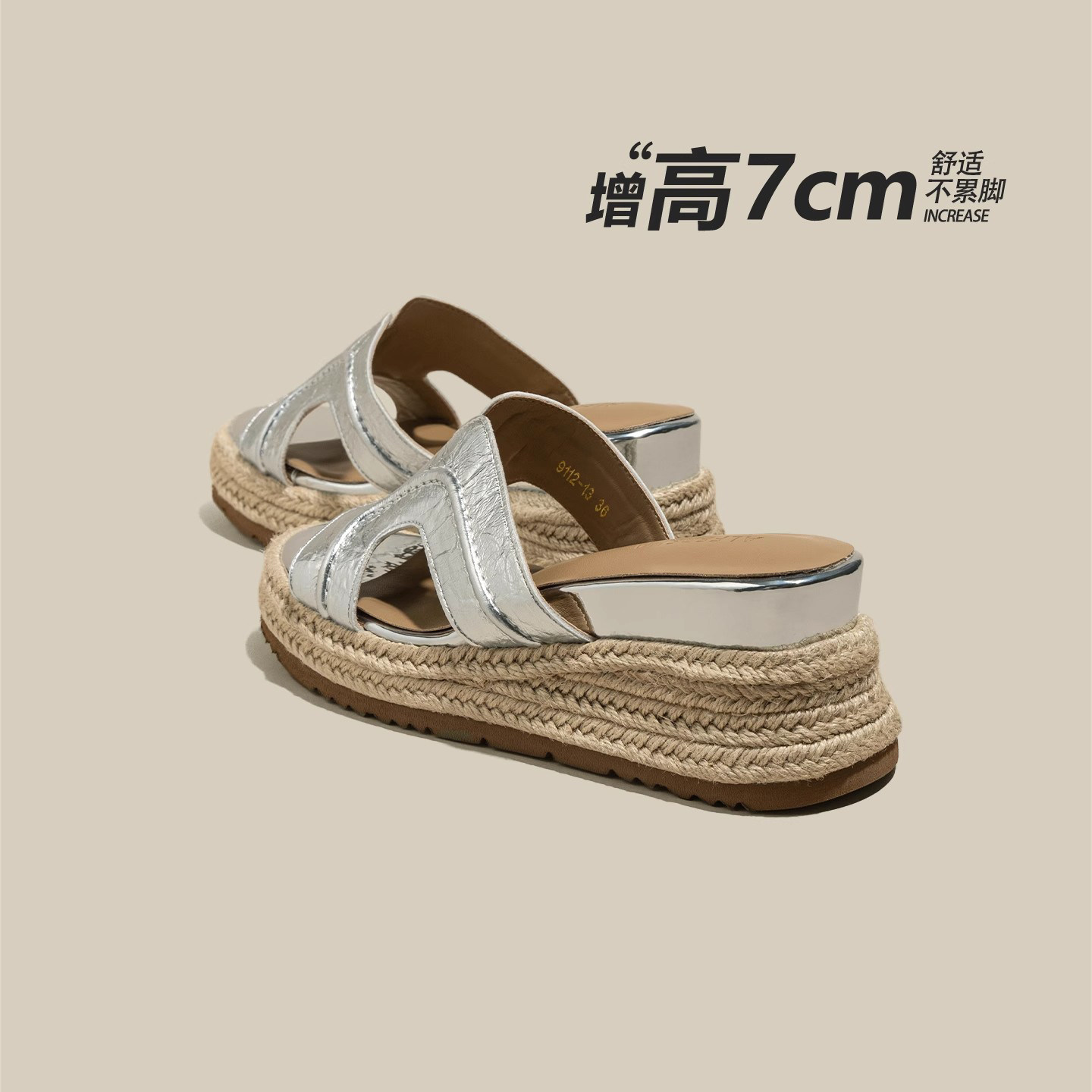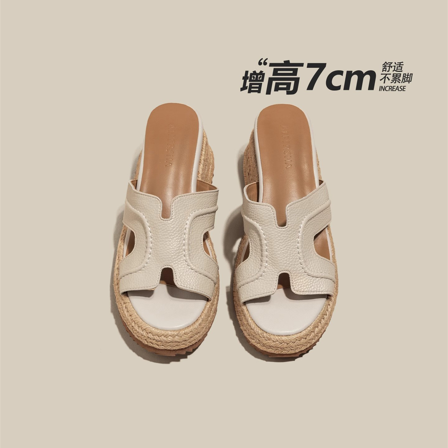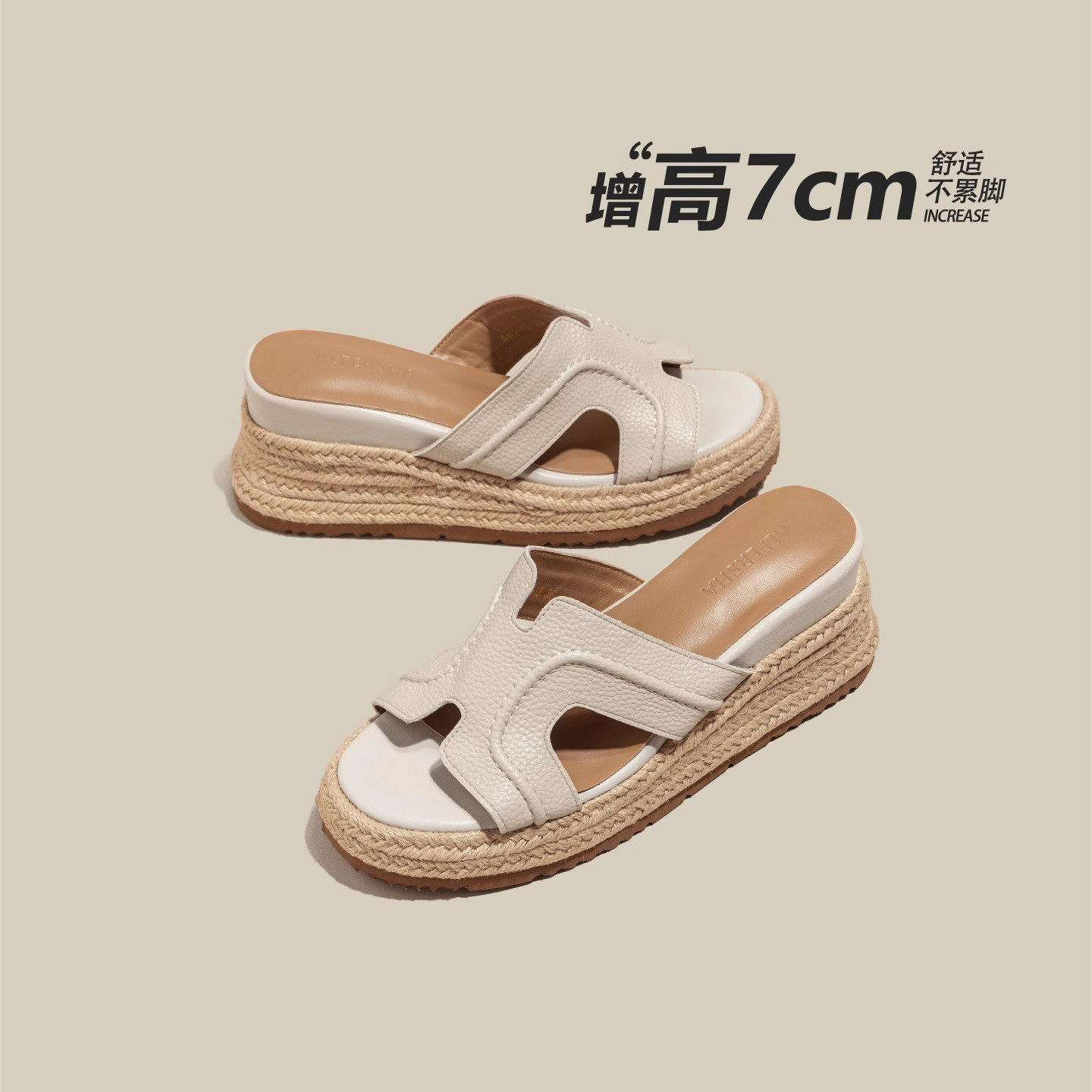 厚底增高坡跟凉拖鞋女外穿夏2026新款海边沙滩赵露思同款编织拖鞋