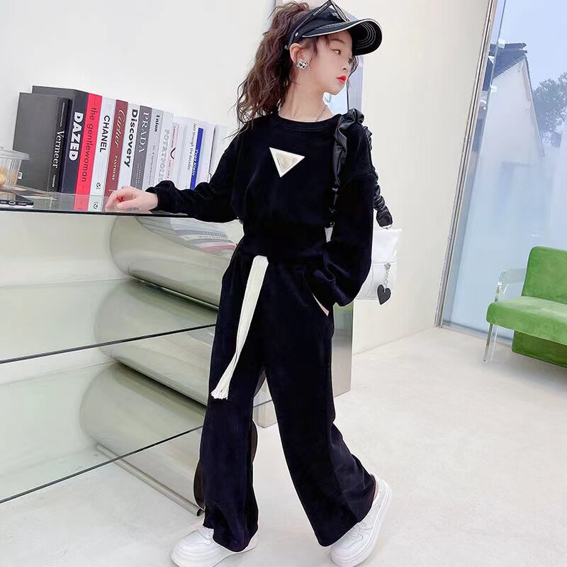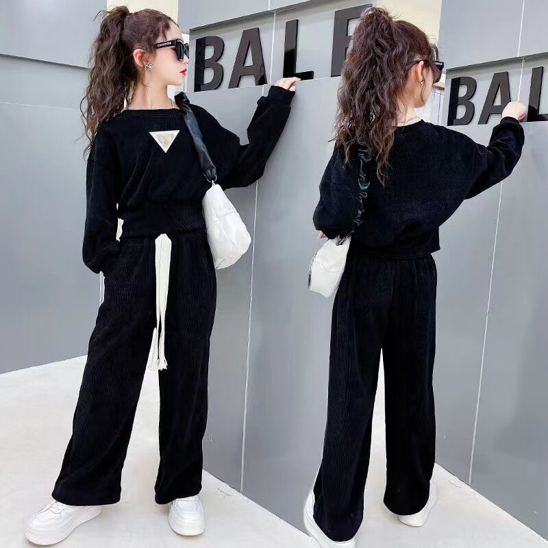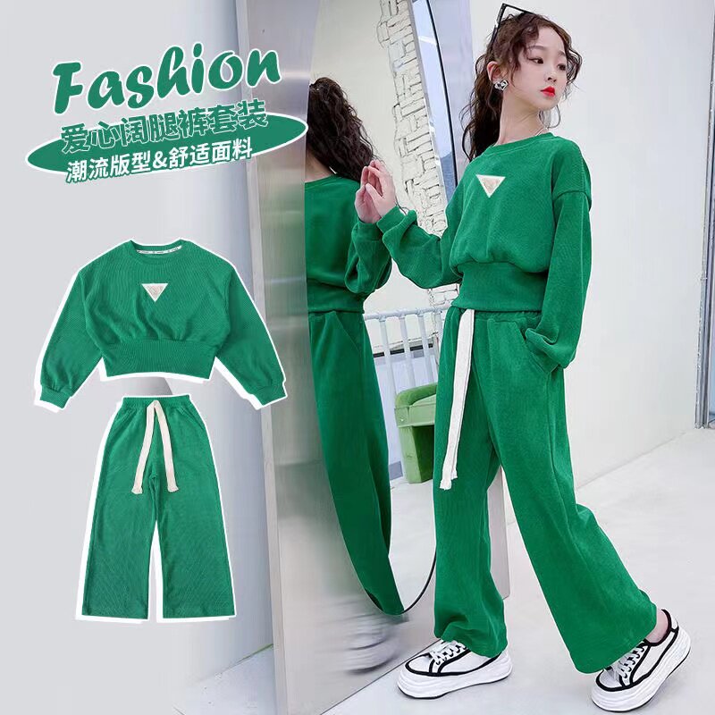 女童装套装2025春秋新款中大童洋气时髦炸街阔腿裤宽松休闲两件套