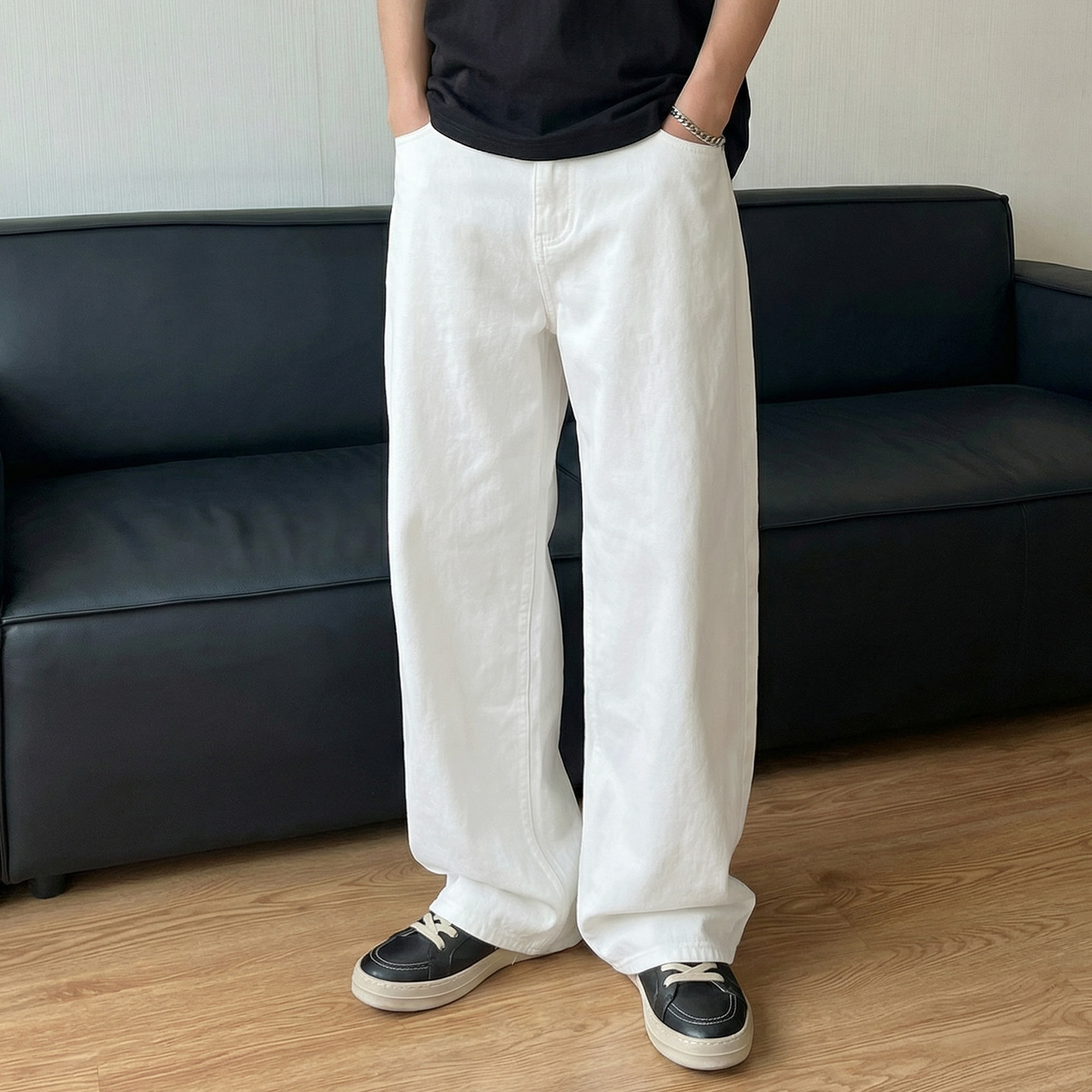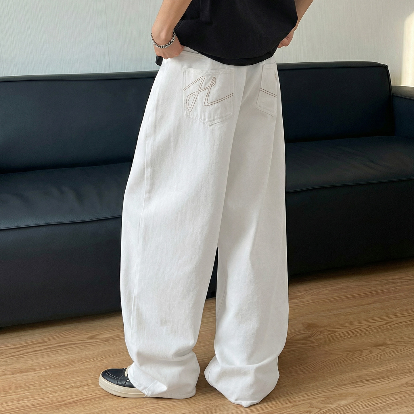 男生白色纯棉牛仔裤男款直筒裤子美式高街2026新款男刺绣大码长裤