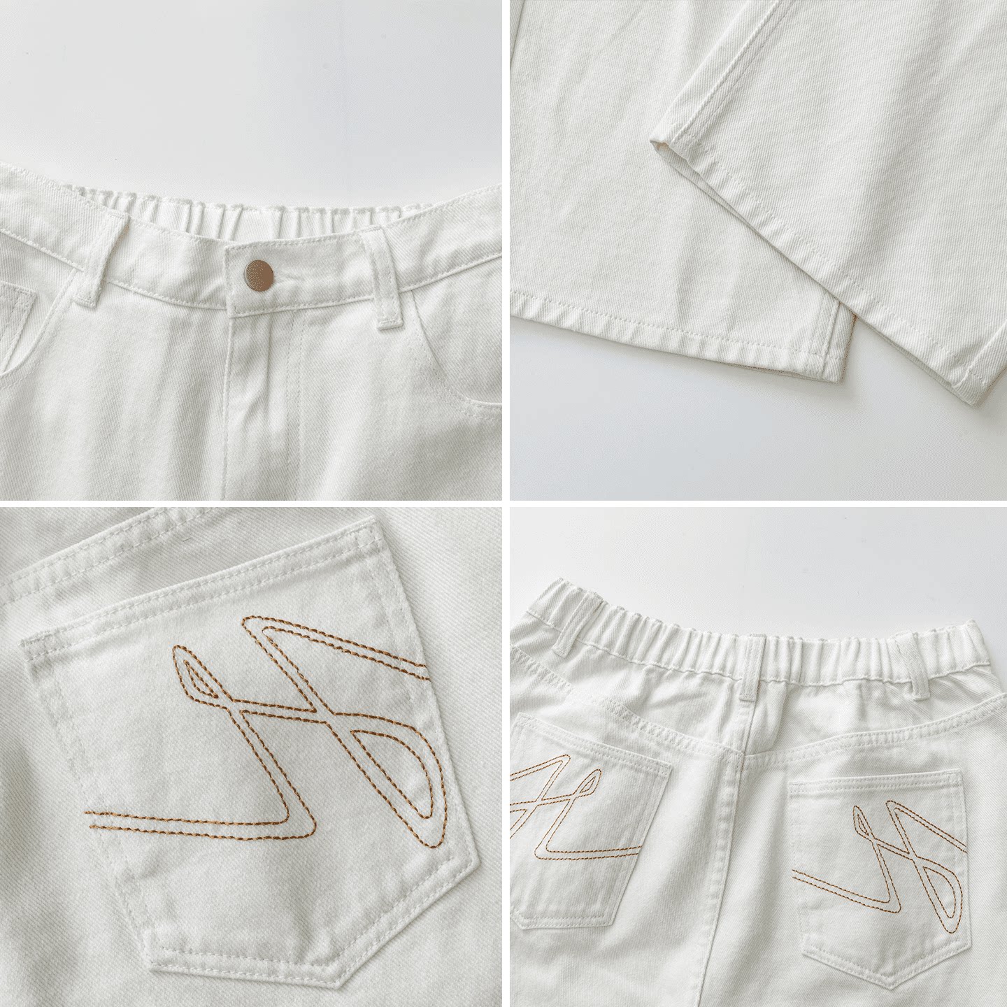 311线报网描述:绣花工艺 纯棉牛仔 拉链裤门襟 阔腿版型