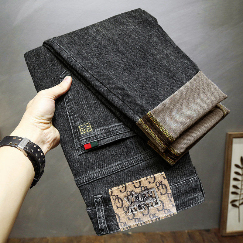 2026春夏新款牛仔裤男士休闲直筒修身刺绣弹力牛仔裤子男款高端