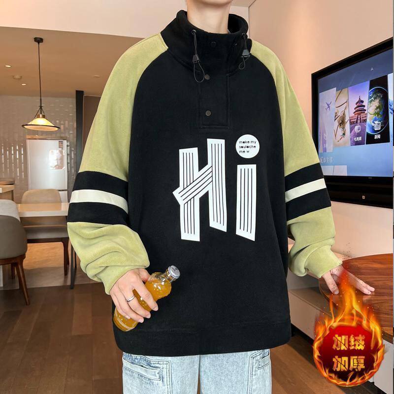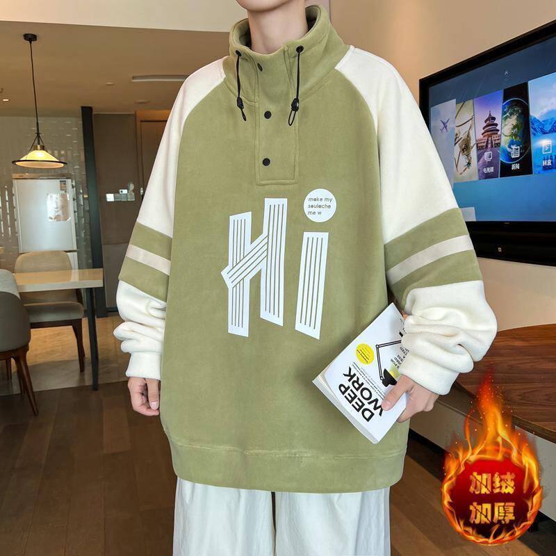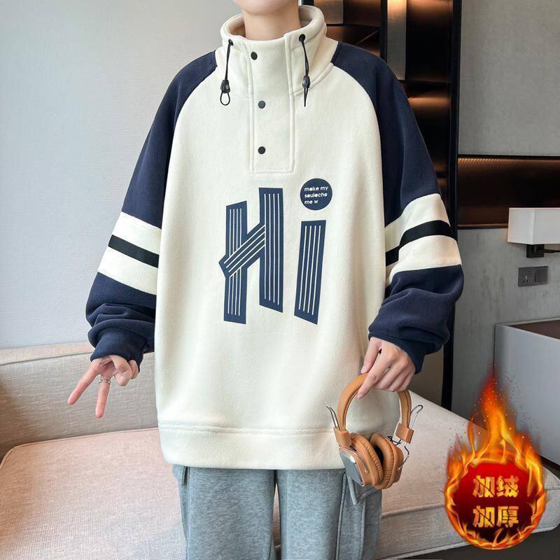 秋冬款卫衣男孩青少年初中学生加绒外套衣服大童一体绒加厚打底衫