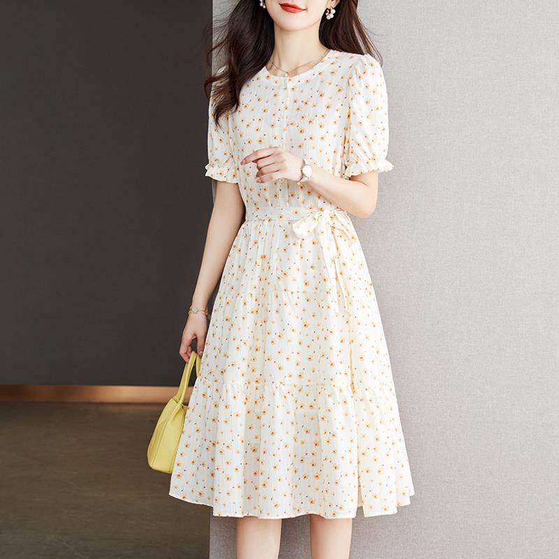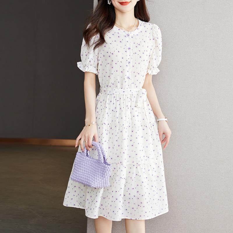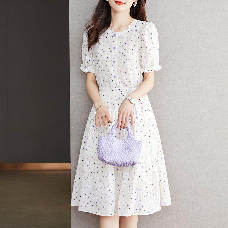 高级感碎花连衣裙女2025夏季新款洋气减龄法式收腰显瘦小个子裙子
