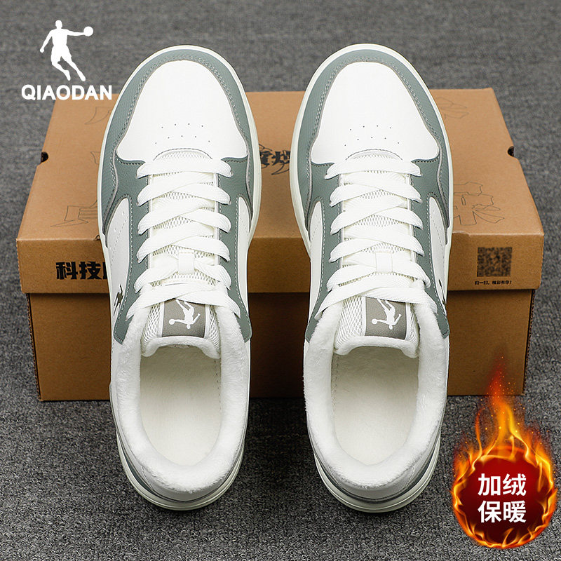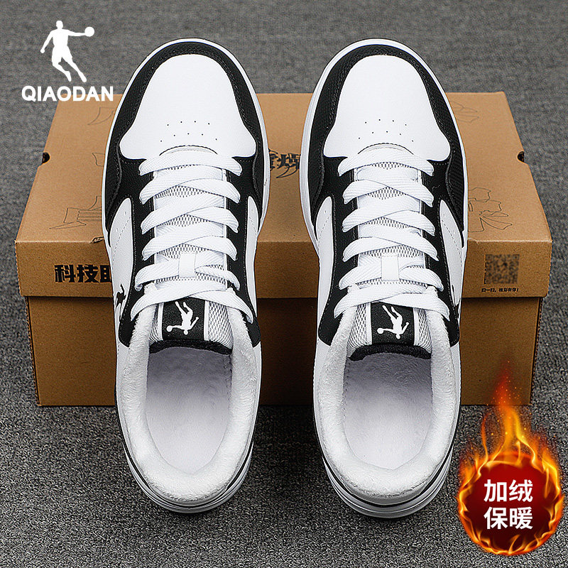 乔丹男鞋冬季新款加绒保暖二棉鞋休闲运动鞋黑色皮鞋男士低帮板鞋
