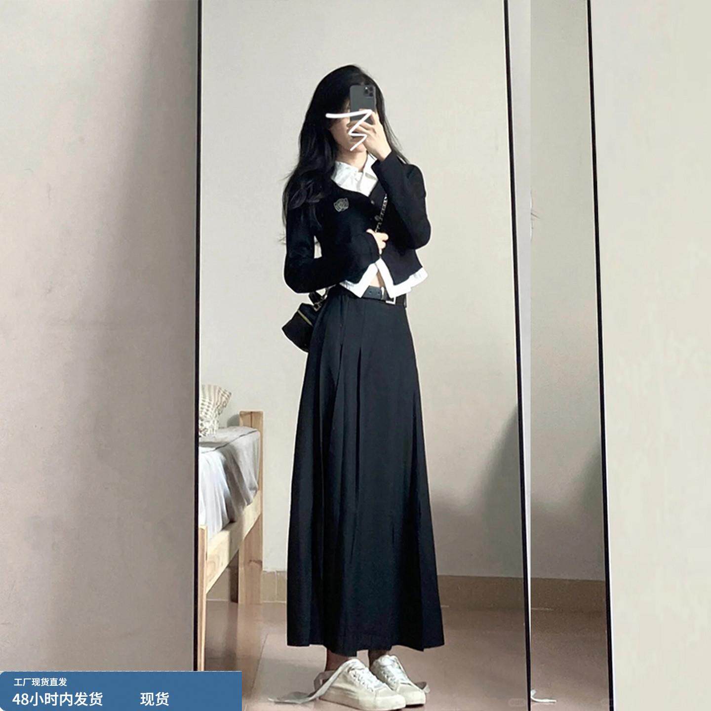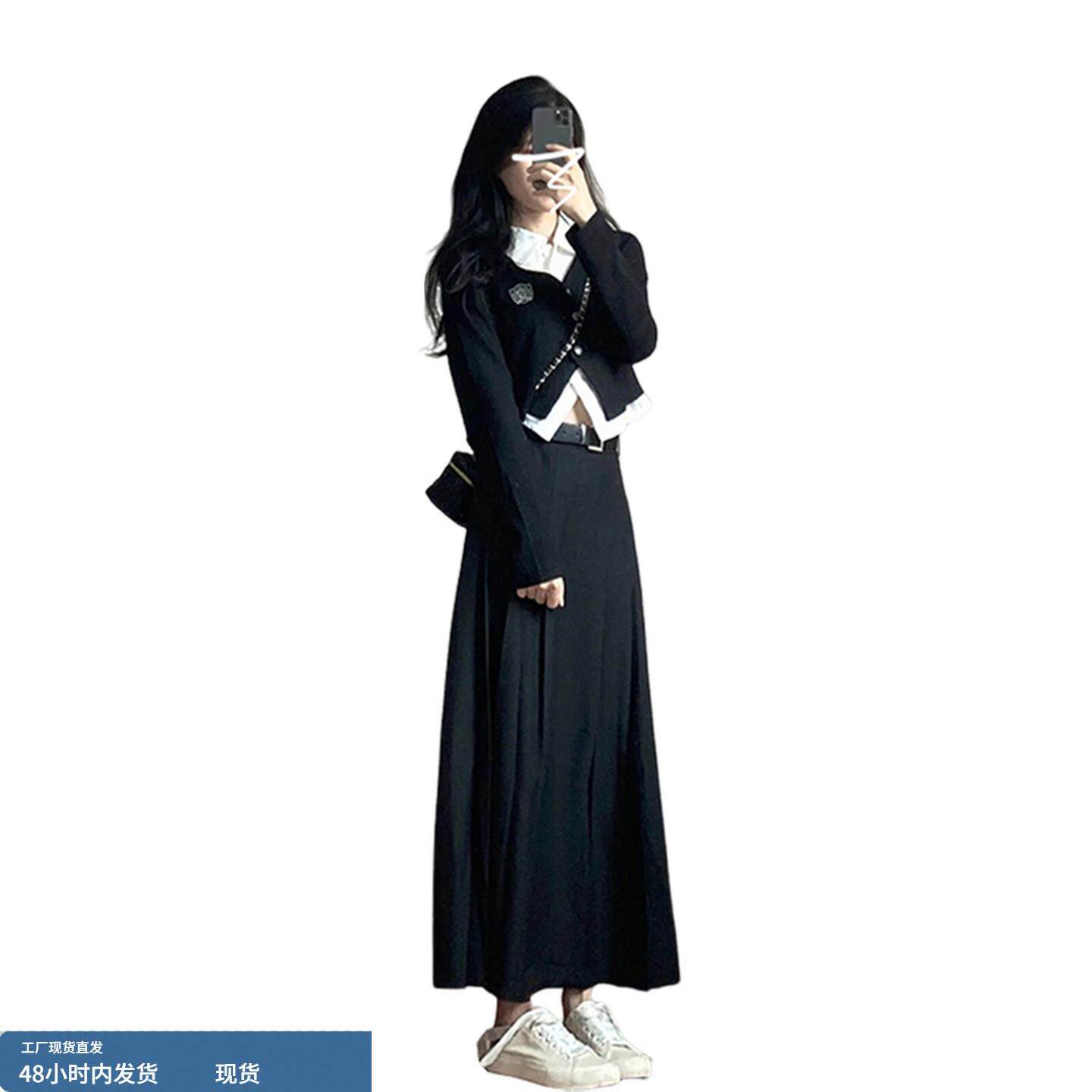 早春气质学院风连衣裙子2026新款女装长裙小个子穿搭一整套装春秋