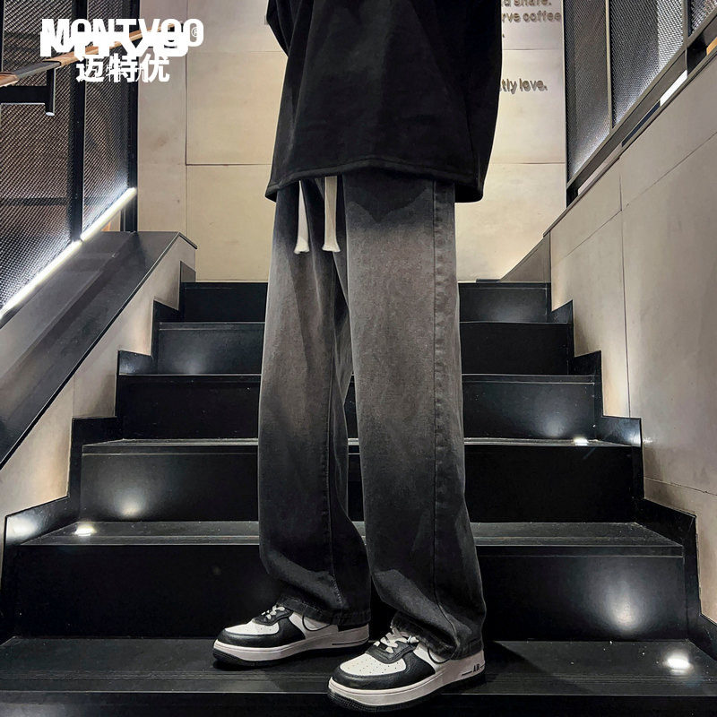迈特优美式复古牛仔裤男士春秋冬季2026新款宽松直筒男生阔腿裤子