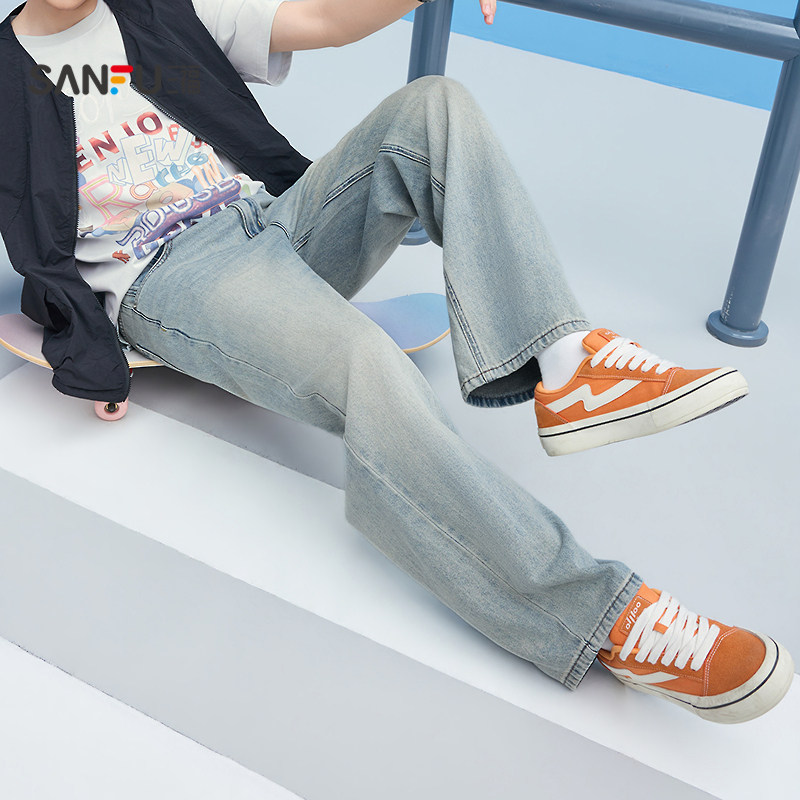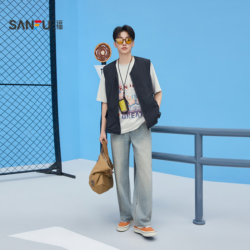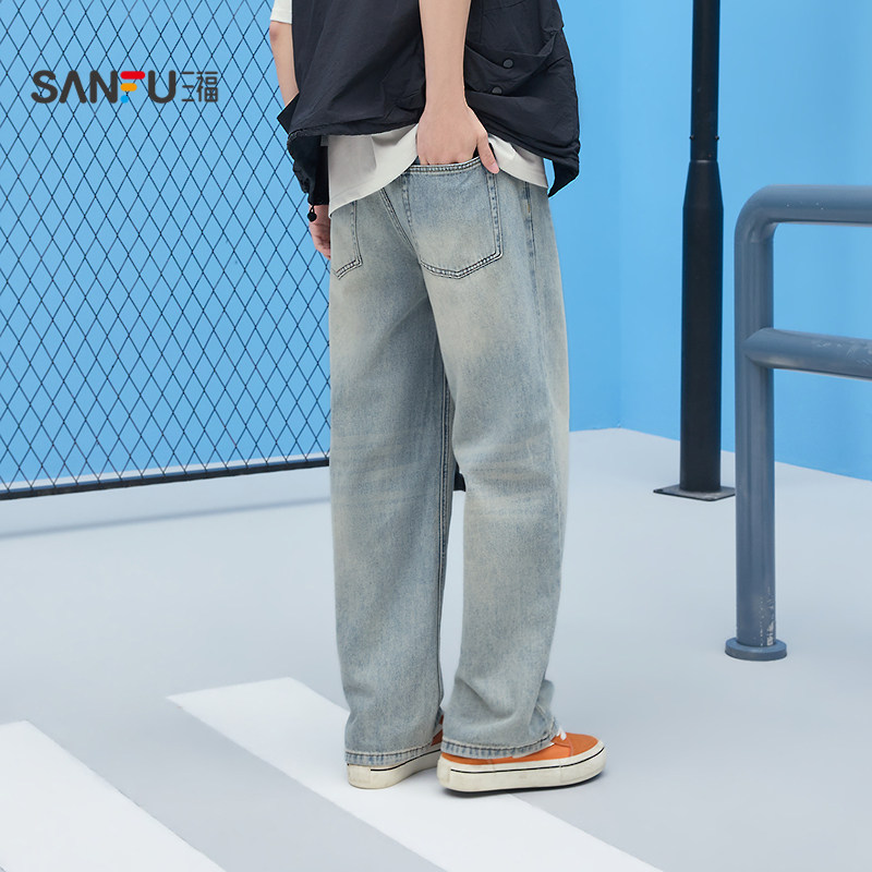 三福2026夏季新款牛仔裤男休闲潮流宽松直筒百搭长裤裤子519752