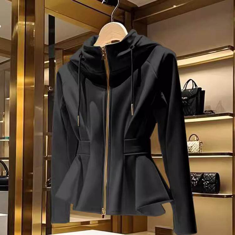 今年爆款拉链立领连帽收腰外套女款2026早春新款收腰运动休闲上衣