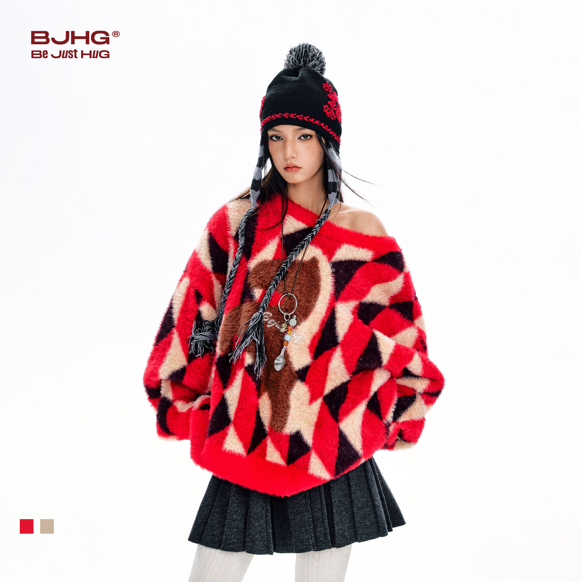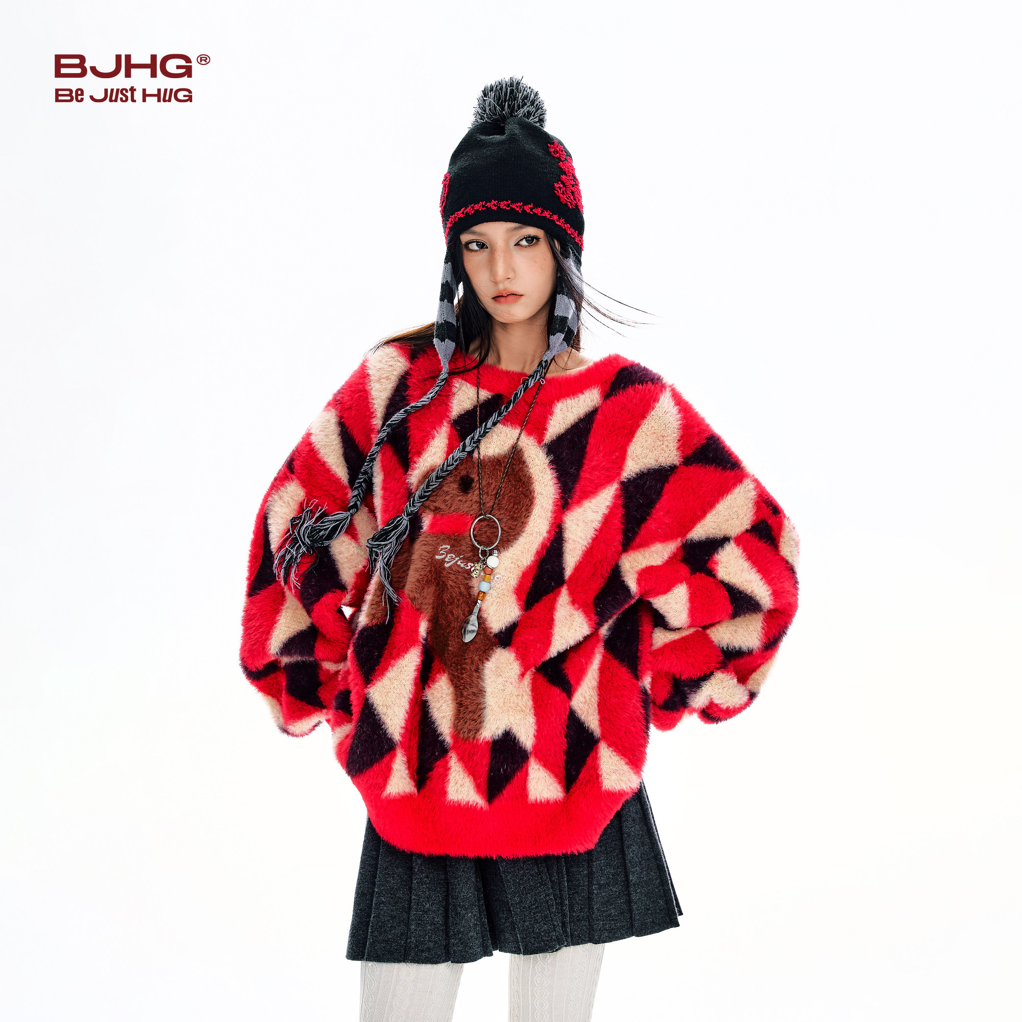 BJHG不计后果新年限定马年毛衣男款冬季红色撞色情侣装美式上衣女