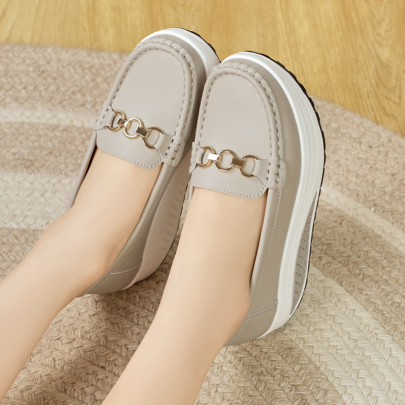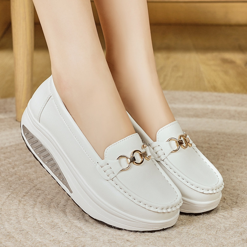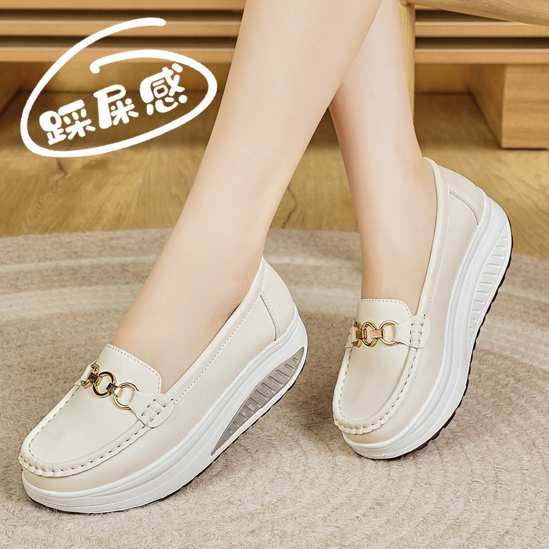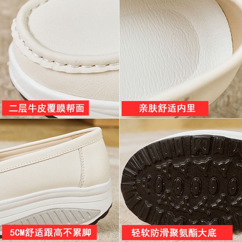 2025新款真皮厚底乐福鞋女轻便软底不累脚踩屎感中老年妈妈摇摇鞋